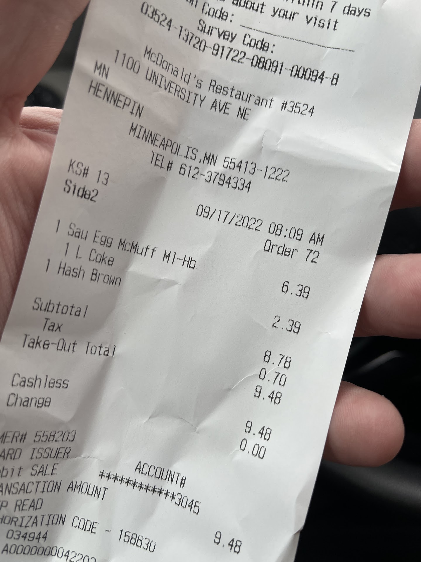 Read moreFurther update; I still go back, I'm not sure if they changed their policy of charging FULL price for a city water, but I do enjoy the employees who work there, I still go on Saturday mornings for an egg McMuffin and a large coffee. I feel the egg McMuffin is a little pricey but the coffee is reasonable priced and about the best in the fast food realms. UPDATE: I'm changing from a 5 star to a one star, because I cannot receive a water without paying FULL PRICE FOR A POP! That's a RIP OFF as well as an insult! The damn GREEDY owners and or management and their cheap, stupid and short sighted decision will negatively effect this location! There was a guy in there this morning that was raising extreme agitation at the top of his lungs! Because McDonald's was asking for a full pop price for a water. I wound up paying for HIS WATER, like $1.60! To shut the belligerent, loud and obnoxious customer! I'm considering ending my relations with McDonald's, for ever, because of the traumatic experience this morning with that irate customer, and, managements STUPID decision to now charge full soda pop price for a cup of city water!