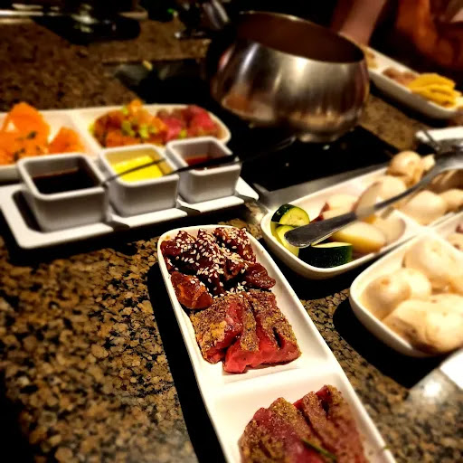 Read moreFirst time here and we read some honest reviews before coming and I would agree with the others here that posted before me. Very expensive for what you get. Interesting and different experience from other restaurants which is fun and something different. Location was pretty easy to find as well. The food is prepared infront of you as well and you get to cook your own food. Lots of option to choose from on the menu. Some cons is that the menu is somewhat hard to read right off bat. We had a party of 5 and had many choices and found that the meat was alright. I found that nothing was really seasoned meat wise and there was no salt and pepper for seasoning but many choices of sauces. The meat you cook in a boiling mixture and it's alright but then you loose all those seasonings that they put on the meats when you boil it. Since the meat isn't marinated before hand you don't get a deep flavor in these cuts of meats and loose all the seasoning. I feel as if the restaurant tried to create somewhat of a Sous vide method but i found it doesnt work at all because its a quick boil when your cooking these meats. So they tend to be tough and under seasoned. The fruit, veggies, and bread were very good with the cheese options. But the veggies seemed like they were processed and a bit dry.Honestly I would just come for the cheese and skip the main course. The drinks were well made but I found them pricy for what they were. The night seemed steady and the waiter only saw us maybe 3 times through the night when he was dropping food off for us and forgot a few items we ordered along with drinks. Was offered for a take out of the items he forgot but whats the point of brining home the items when you're there for the experience and you dont want to reheat this type of cheese sauces at home otherwise it will split and become inedible. Not the best service but he was very nice. I personally would choose the other two steak houses in Minneapolis over this if your looking to spend over $240 for 3 people. Other locations I found had better service, well seasoned meats, and found that a valets are very handy in Minneapolis. Maybe we will visit again but if your looking for a quiet and relaxing evening, I'd look elsewhere for dinner. Good experience but I wouldn't seek this of dinning anytime soon or on a...
