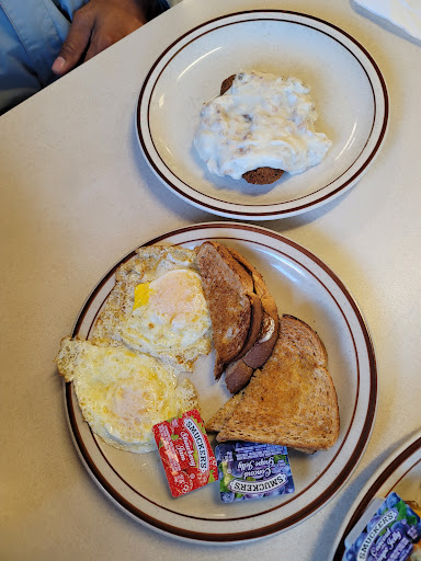 Read moreThis is a breakfast/diner restaurant that has been family owned for many decades. No wait time when my partner and I went at 10:30am. I got the Philly cheese steak egg scramble and my partner got the typical 2 eggs, bacon and toast breakfast. The Philly cheese steak egg scrambles was hot and good. The cheese was melty and the steak had good flavors to it and it was on a bed of hashbrown that was good (3/5). We also ordered a cinnamon roll that we saw was microwaved to heat it back up but tasted like your typical cinnamon roll. Gooey sauce and soft middle, was decent (3/5). The only con to the place was the service. The waitress was nice and so was the other staff but we never got asked for a refill of water and coffee when there was only us and one other customer in the restaurant. The only time they came back after getting our food was when we were already done with our food and then asked if we wanted more water or coffee. Overall, an okay place with okay food. Would've just liked to have had more attention for refills...