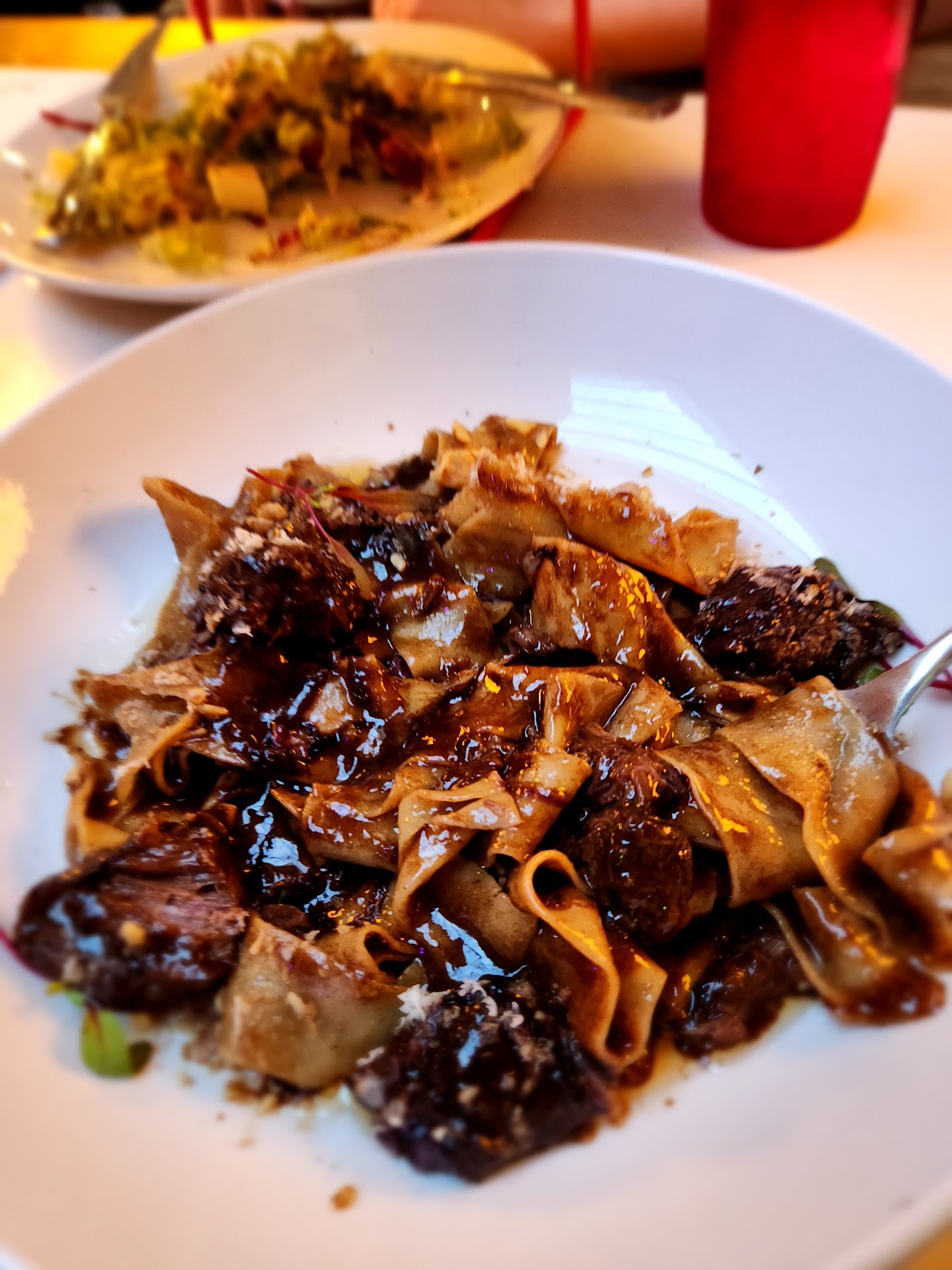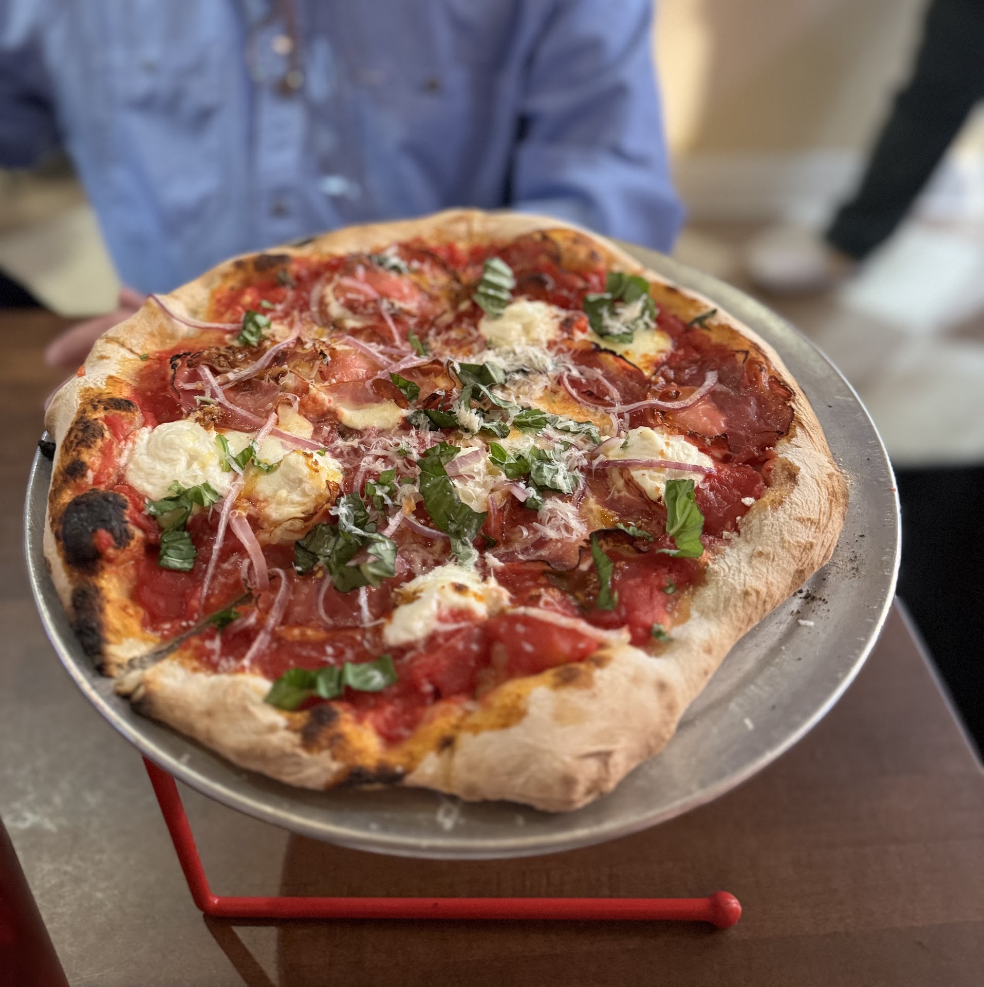 Read moreNot gonna lie, I am a fangirl of Mr. Paul's and their expansions. From the Burgers at the burger bar to the Po' boys at Malcom Yards. So I knew I was going to like Mothership Pizza, but I didn't know how much I was going to love it. Went on Friday night at 5 opening week and it was packed. We got our name on a list but then choose the bar once two spots opened up. There is only 1 tap and it's the Italian lager Peroni, which made my husband said as he is an IPA guy. But lucky for him they do have can options and he got a Bell's 2 hearted. I went with a red blend wine can't remember the name. For food we ordered a lot because it all looked good. (We brought a lot home.) We got the Italian chopped salad to start. The salad was nicely dressed with large pieces (almost too large) of salami and fontana cheese. We followed that up with the Patsy. I love prosciutto but it can get chewy and stuck in your teeth. NOT the case with the Patsy. The prosciutto was nice a crispy almost like a bacon, the ricotta creamy and then the arugula on top with the lemon dressing made for the perfect bite. For pasta we got the Agnolotti, which was nice a light with subtle flavors, the papperdalle was the except opposite of that, filling, comfy, cozy. The short rib was nice and tender my only wish was that it had more horseradish. But the star was the Rigatoni. The sauce clung onto the rigatoni perfectly. A little spice from the chili flake, just so good. The service was great never lacked for anything. Everyone had smiles. There were tvs that had a basketball game. A killer place list. It was quite loud, so if you were looking for a nice quiet dinner walk over to Mr. Paul's and get a table. This is a loud, upbeat modern italian...