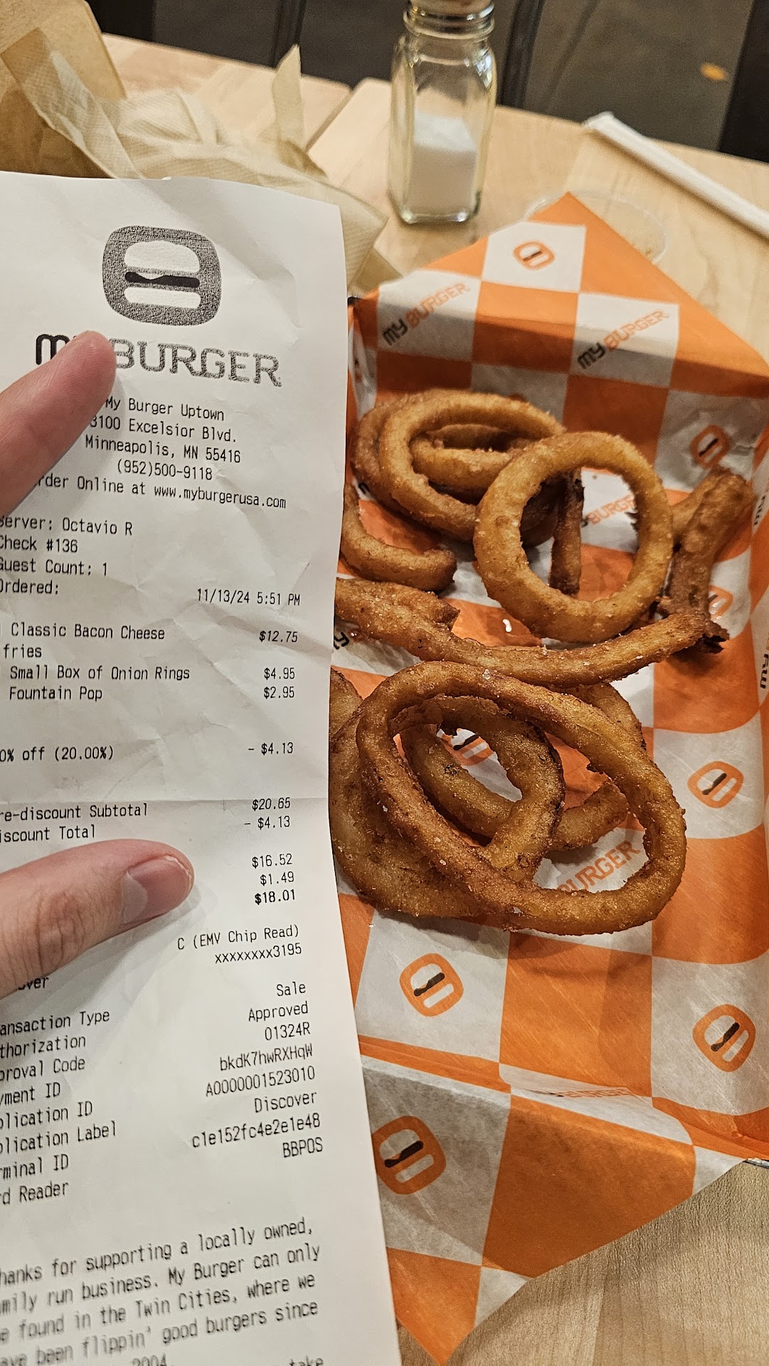 Read moreMisleading pricing, small portions and careless staff. I went last night for their 20% off birthday deal for the first time and ordered a meal + onion rings for $18. Would be a more reasonable price if the onion rings didn't cost $5 as a side when the menu lists them at $2.45 and the staff fails to disclose that pricing is only for swapping the fries out with them. It was only after I checked my receipt and asked the staff why they charged me twice the amount that they told me the pricing issue. That still would have been fine if I got a reasonable amount of them, but the picture here is what you get for ordering a $5 "small box of onion rings". I'll never be coming back here again as long as the menu obfuscates true pricing and the staff doesn't tell you the pricing difference when you order. It's dishonest and stingy and while the food and drink was decent it doesn't make up for the business practices on display. If you're coming here, you live in the midwest, and can get better food for the same price pretty much...