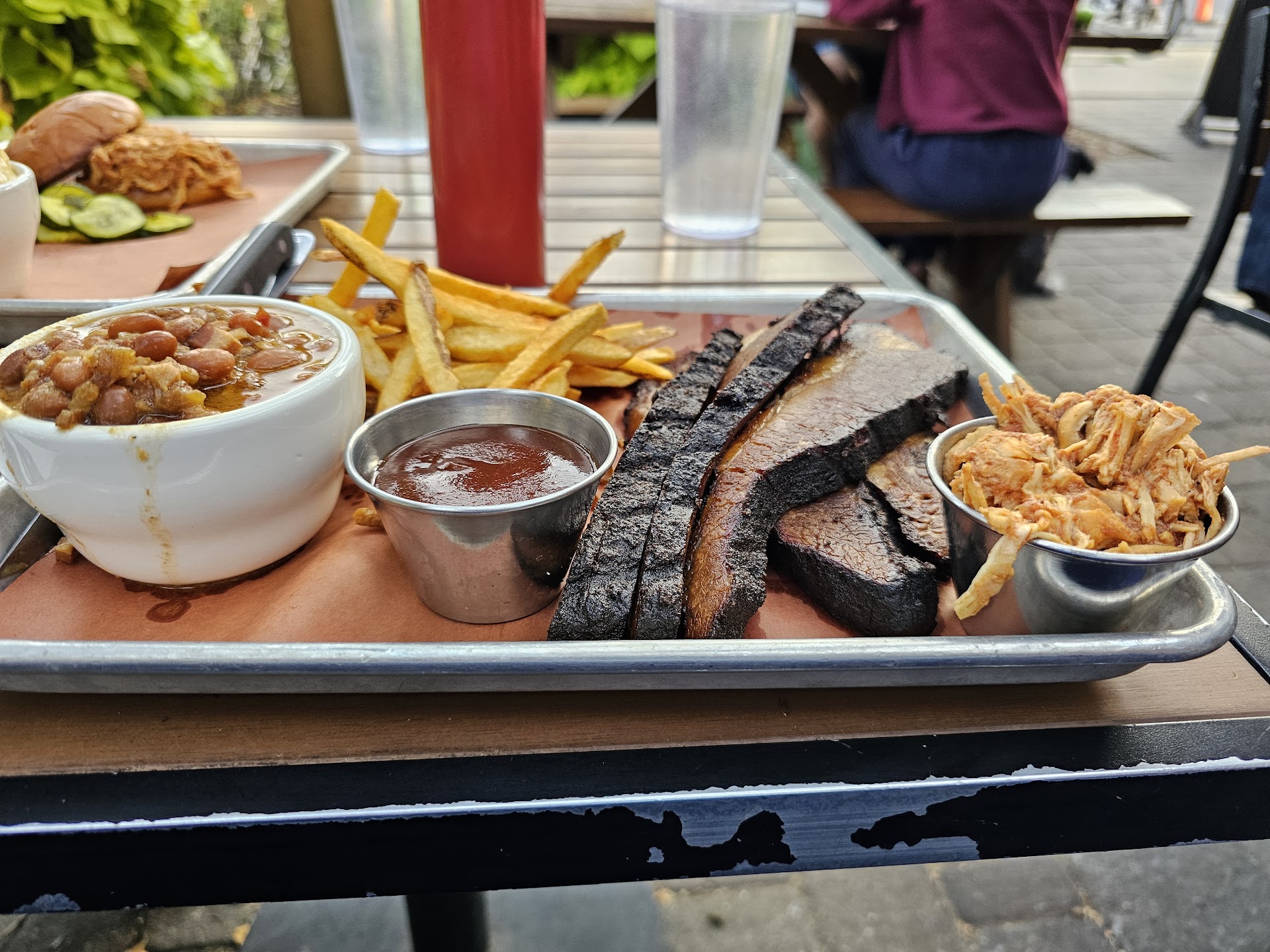 What was it? It was their 18-hour Porchetta Sandwich and you guessed it, was smoked for 18 hours. It's like we can read each others minds sometimes... We looked at each other with the same reaction "Guess we're getting that!". The bartender looked at us and chuckled, "Yeah, it's a must try!". Porchetta is bar far one of my all-time favorite meals and anytime I get a chance to have it, I most certainly will be. The full description is; The "Iron Range" classic, house-smoked shredded porchetta topped with Swiss cheese and sauteed onions on an egg bun, then served with with their house-made BBQ sauce. We also added a side of their hand-cut fries to our order and I've said this time and time again... We need more places serving hand-cut fries. They're simply better! Is your mouth watering yet?