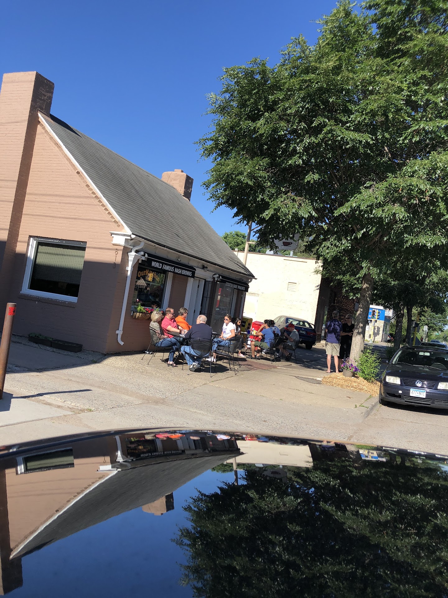 Nestled in a what I deem a “Transitional” Neighborhood. Meaning... VERY Ethnically Diverse Area. Between Hustle & Bustle of Downtown Minneapolis & MSP International Airport. From East Indian, Euro-Afro-Italian-Latin Americans. Random people Public Service Workers like Fire & Police Officers. Young & Old Artists. All harmoniously enjoying our breakfasts, some shoulder to shoulder with friends, strangers & Neighbors. Guys with Bandana’s biking with trailer in tow of their little ones. To the Runners, walkers, motorcycles & various vehicles. Surprisingly NOT speeding down busy W 36th Street. Between Bryant & Aldrich.