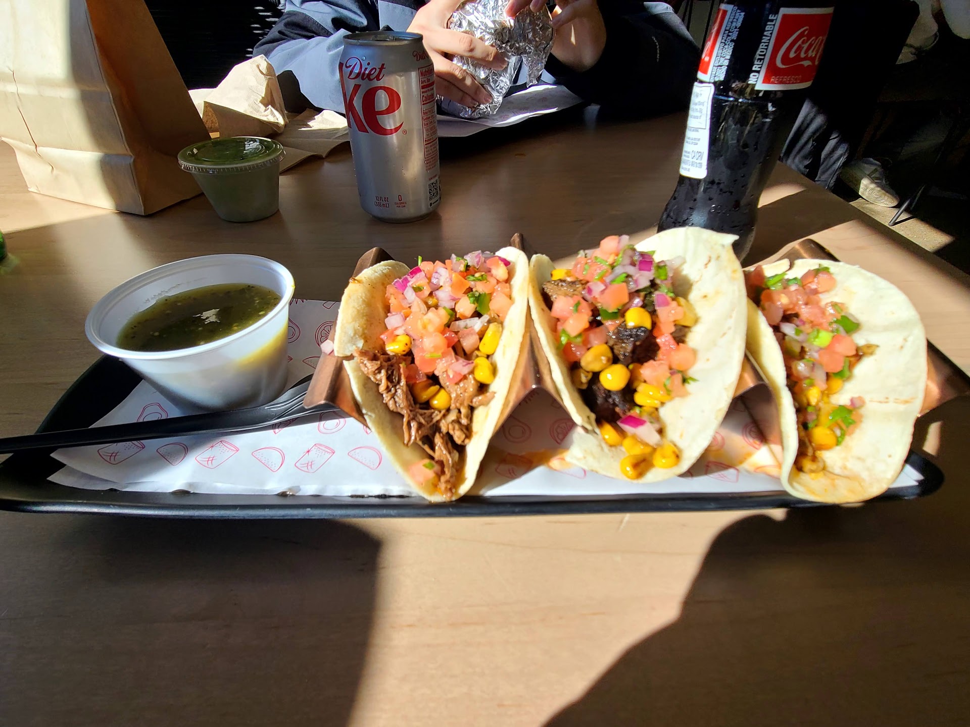 Read moreTo be honest, the only thing I can say is that it's an improved version of Tex-Mex food like the Chipotle franchise (sorry to mention it). The decoration, the music, the flower bar, the margarita drinks and some more additions to the menu are some aspects that makes it different. When we arrived there was only one employee doing everything from taking your order, preparing it and collecting money (I hope they paid her very well because she did a good job) which took longer compared to going to Chipotle (by the way they don't take cash) I ordered some corn tortilla tacos and the truth is they were a total disappointment, when I ate them the tortilla fell apart and sadly I couldn't eat them, I had to ask for a container and make a kind of "chilaquiles" (anyone who knows about authentic Mexican food knows what I'm talking about) I was dying of shame because I felt like some people, were watching me eat my tacos with a fork (no Mexican does that...ever!) but I was hungry, the food tasted good and I had to eat it no matter what. The truth is I don't know if I'll...