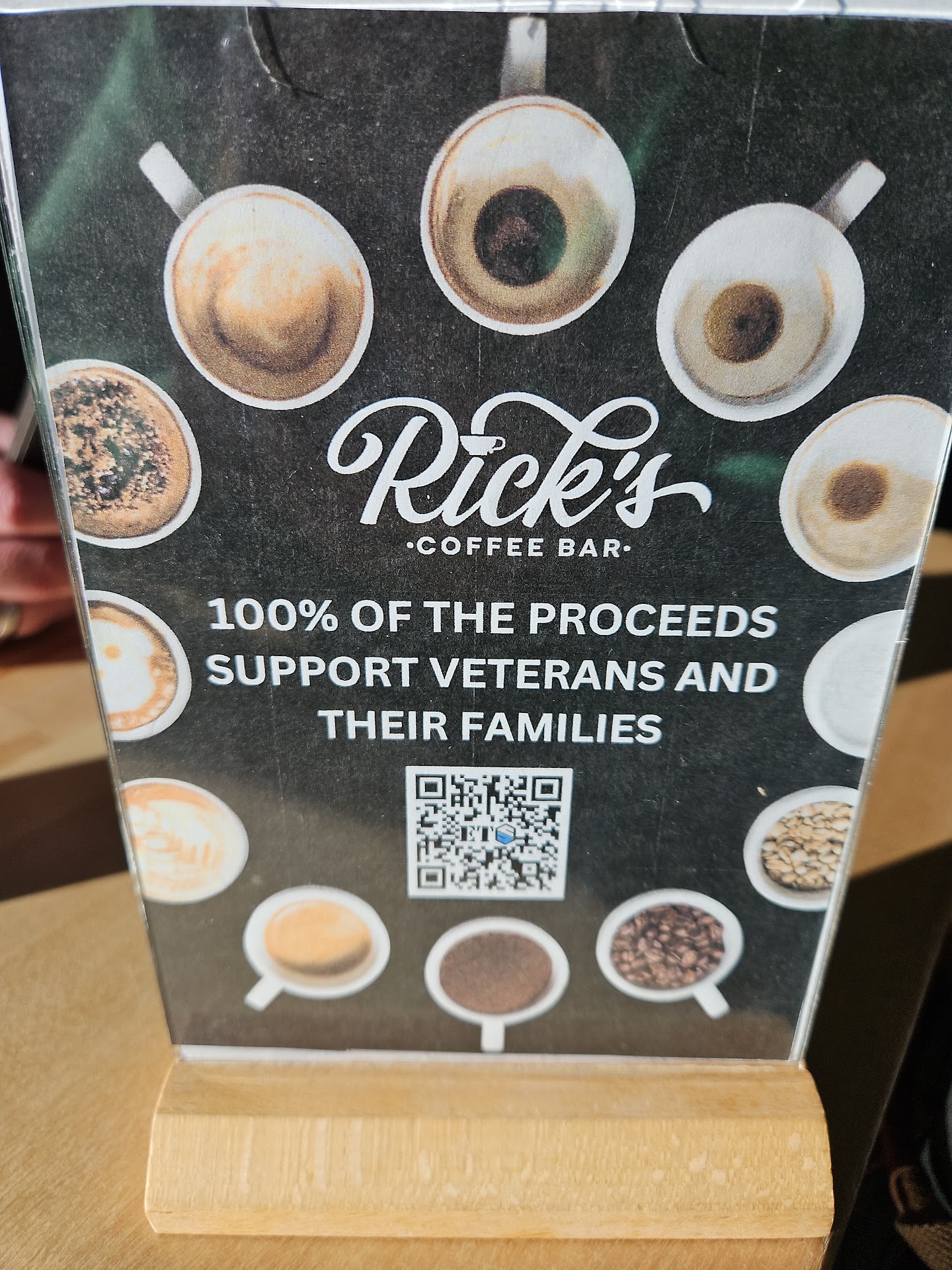 Rick's is a part of the nonprofit Every Third Saturday (ETS). ETS designed and owns the building, out of which it assists veterans in the broadest sense. It's good to know the cafe exists to both be a gathering place for veterans, and also a neighborhood coffee shop.