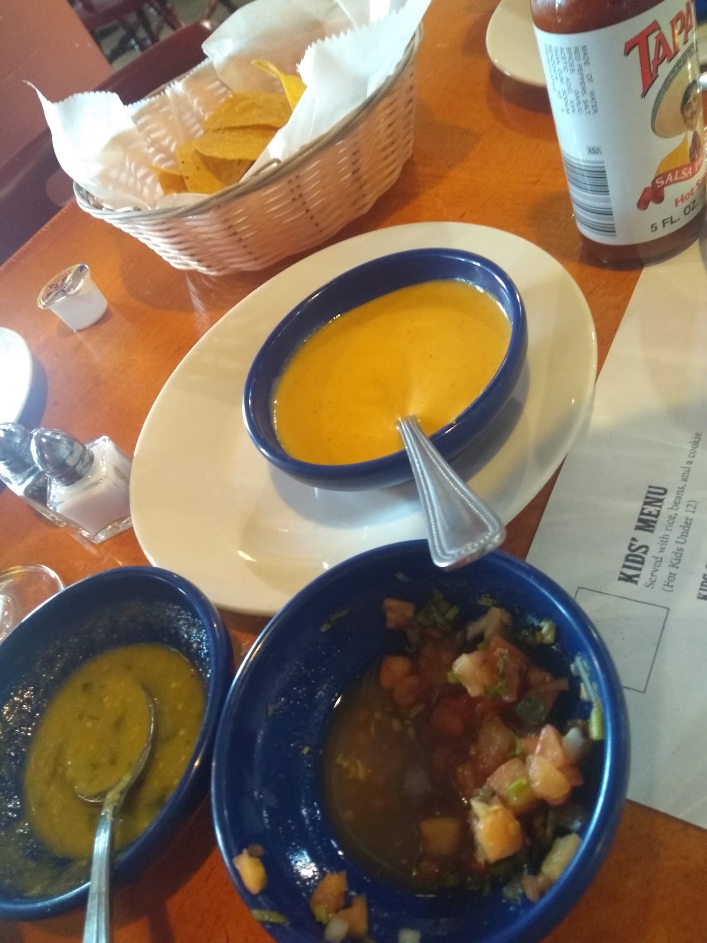 Anyway, Salsa a la Salsa was pretty good! When we were sat we were promptly given menus, water, and chips with salsa. The waitress was prompt and the other staff kept our water glasses full.