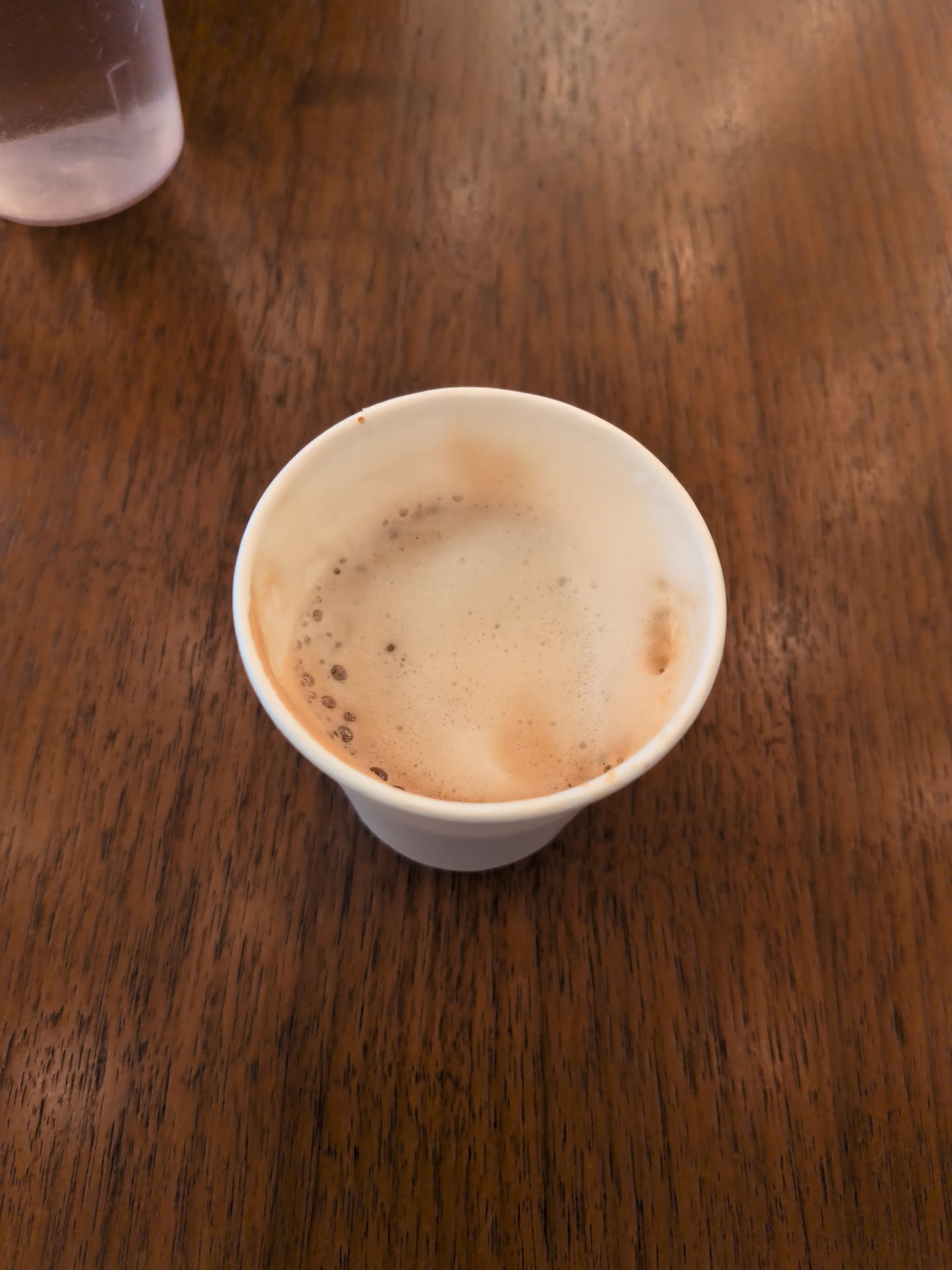 Ordered a cortado for here, not to go (i.e. I wanted it in the correct glass cortado cup, which I saw on top of the espresso machines). Seeing these glasses out in the open is typically a good sign at a coffee shop.