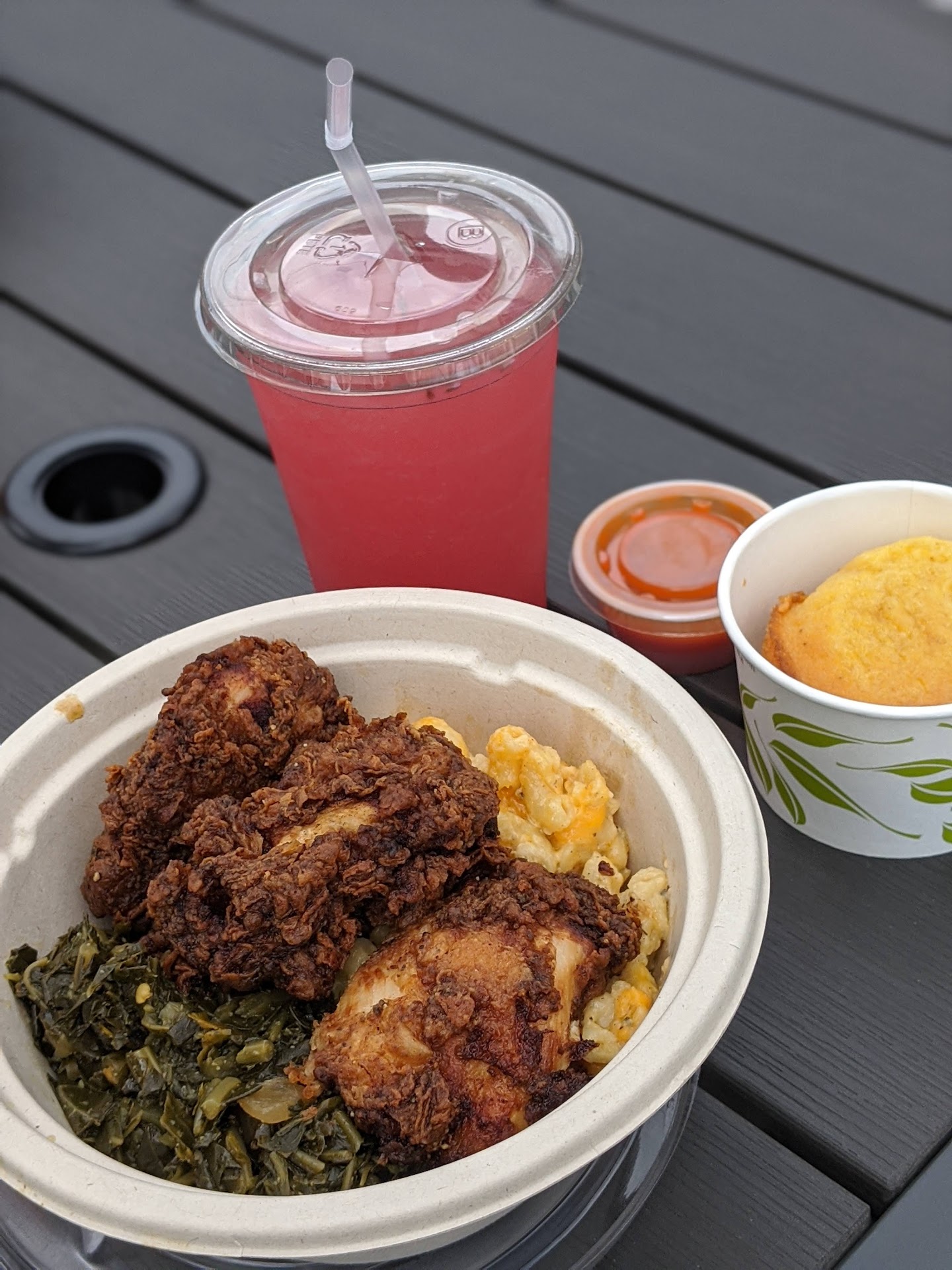 Let me pre-face this by saying, I’m not one to write reviews unless the experience is above and beyond or absolutely terrible…… I was so excited to try this place as I’ve been traveling back-and-forth to Minnesota for the last month and really tired of eating out. So I chose some thing that isn’t typical takeout food or fast food. I thought the menu was very clever and interesting so that made me believe the food was going to be amazing. Unfortunately, the food was far from amazing. I ordered the Southern hospitality meal which comes with fried chicken, greens, mac & cheese, and yams. I also ordered the peach cobbler cheesecake. I honestly can’t say anything good about ANY of the food.