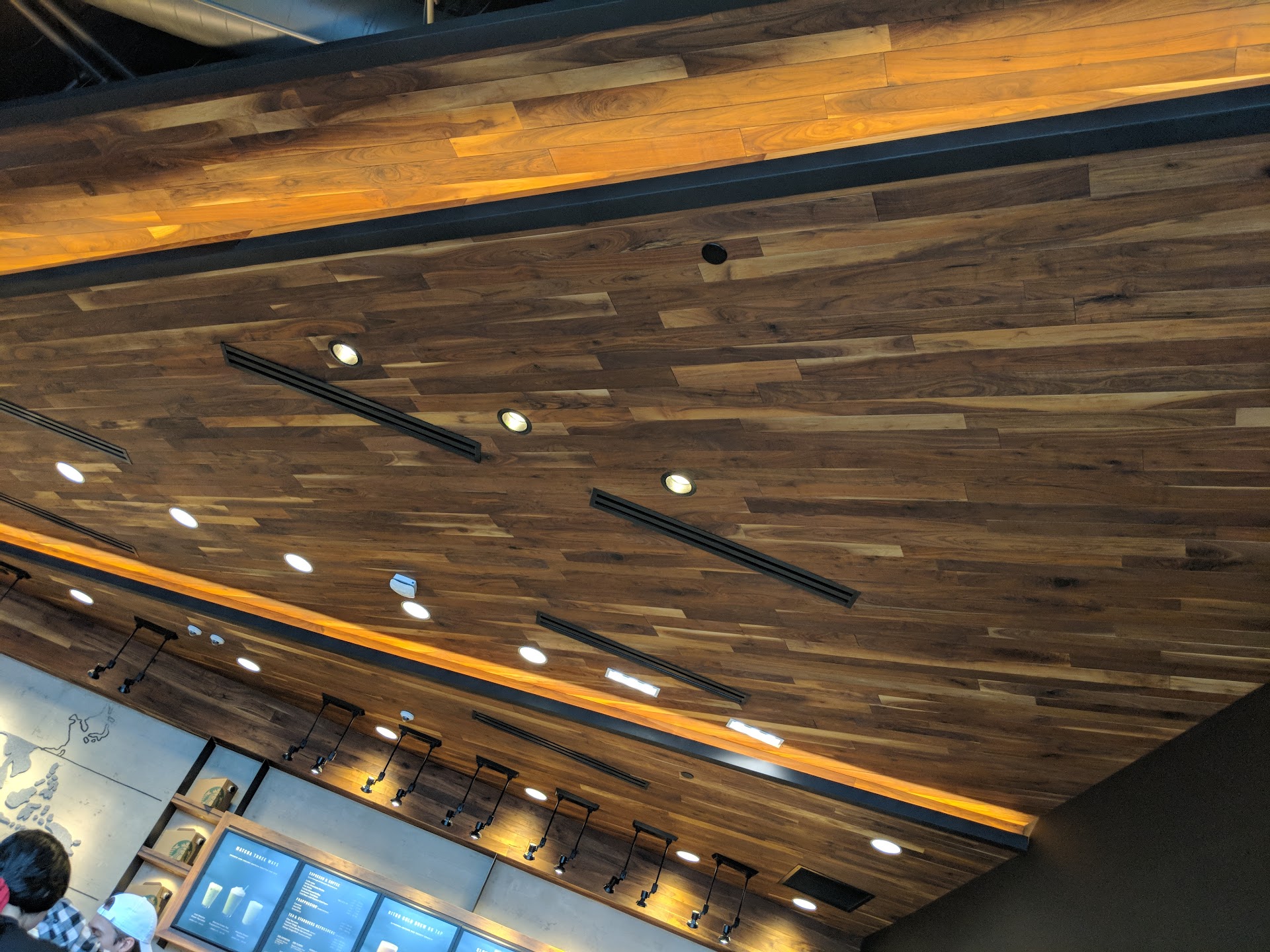 Read moreRoomy loft style layout built from the ground up with plenty of stained oak and floor to high ceiling glass in a corner location. I was told the design was to 'put a hardwood floor on the ceiling'. The actual floor is composed of less impressive functional grey marble tile slabs. There is a constant background hum from the convection ovens and refrigerator cases you eventually get used to, but I suppose that's unavoidable. This one is remote enough to avoid much of the aggressive downtown thug traffic that ruined the Marquette Starbucks by the light rail. Has the occasional shady character who harasses, steals food and abuses the bathroom, but considering how bad downtown has gotten with politically correct policing it's an oasis. At Marquette they come in packs. Civil regular traffic includes Federal Reserve Building employees from across the street, bus drivers who line up in layover on 1st Street, uniformed students from DeLaSalle High School on Nicollet Island, and high end apartment dwellers on its massive block and nearby. This besides the typical coffee shop crowd you'd expect using it for business meets or as a day office. Manager Tim runs a tighter ship than most, he's the one to approach...