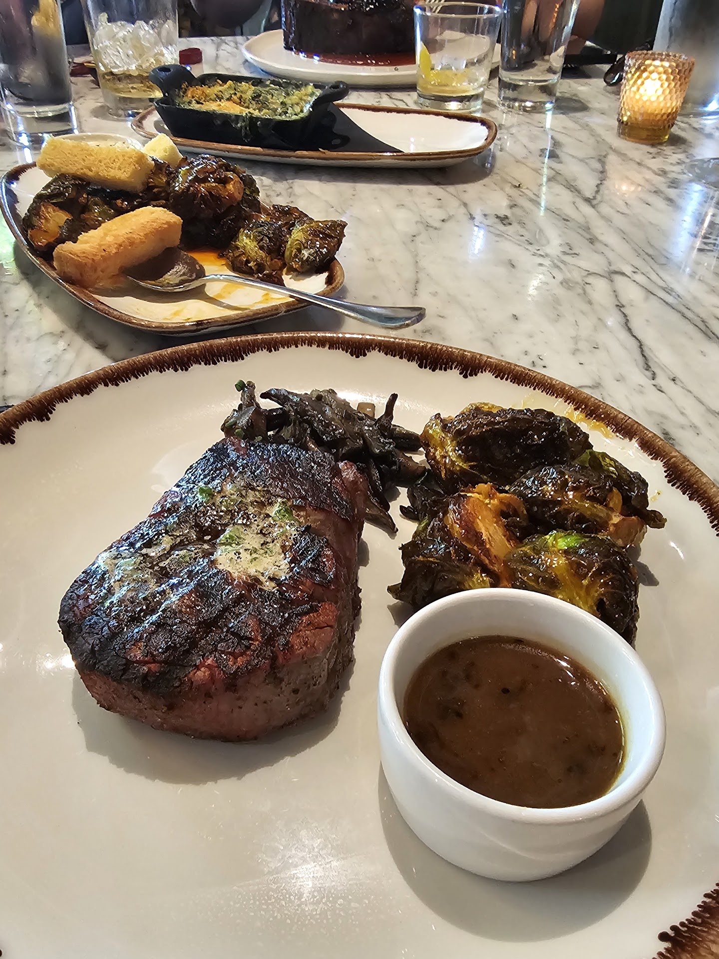 The bad We ordered the calimari and the entire bowl was filled with banana peppers, capers, and fried lemons, there were a total of 8 calimari pieces in the entire dish.... If I order calimari I expect the calimari to be the star and most of the serving to be calimari with some garnishing not the other way around My wife ordered the 8 ounce filet and I ordered the 16oz MN ribeye. When our steaks were delivered I thought my steak looked on the skimpy side, then I looked at my wife's steak, realistically if you cut her steak into 3 slices as thick as my steak, she had more meat than I did... With 2 sides, a salad and an appetizer I would not have eaten a entire 16oz steak... I ate my entire steak and could have eaten more... As someone who cooks, smokes, and grills extensively I am a pretty good judge of meat size, the steak I got was guaranteed no more than 10 to 12 ounces and more likely 8 to 10 ounces... So i would say my wife got a bigger filet than she ordered, but the ribeye that I ordered was considerably smaller than what I ordered.
