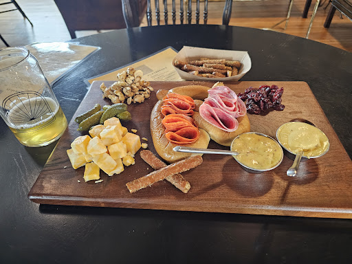 The ONLY reasons I don't give a 5-star overall rating are: 1) the charcuterie boards are tasty but quite overpriced; 2) the high, antique, embossed-tin ceiling in the Brew Pub, however pretty it is to look at, makes for a disastrous acoustic situation when the place is crowded. You have to shout to carry on a conversation. After an hour of this, you find yourself taking a bathroom break just to get a reprieve from the head-rattling noise level.
