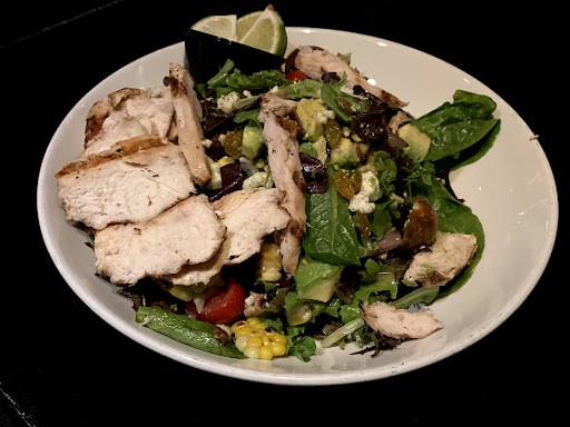 Food: I was feeling healthy so I went with the Honey Lime Chicken Salad which is a bed of mixed greens underneath sous vide chicken breast, grape tomatoes, charred sweet corn, golden raisins, avocado, blue cheese, bacon then drizzled with honey lime dressing. It was delicious. The chicken was seasoned so well. The sweet and savory dressing melded well with all of the ingredients in the salad.