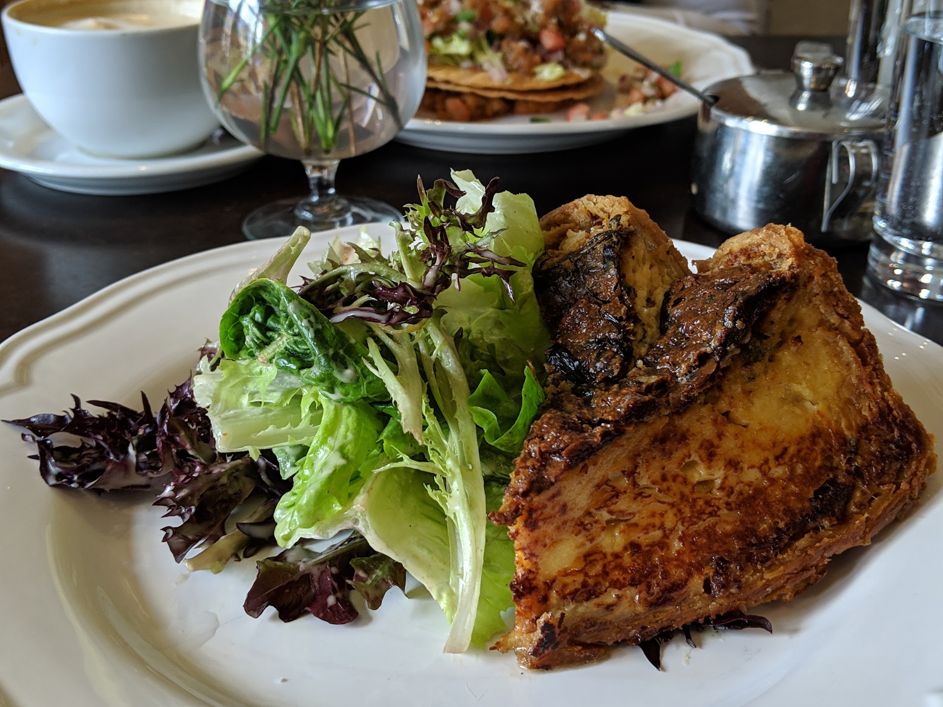 For brunch, I order the quiche lorraine made with bacon, onion confit, and gruyere. This dish was buttery smooth and fluffy with a great balance of savory flavors. I've had several quiche lorraines at many places for brunch, this one at Harriet Brasserie is one of my top 3 favorites in the twin cities. My guest had the tostadas with two eggs, crispy tortillas, pinto beans, salsa, queso fresco, avocado, and lettuce. Though the dish looks light in weight, the amount of pinto beans were plenty and filling. This dish was light in flavors but fills you up quickly. Wish I had ordered a drink from their menu or bar but that just means I need to go back for dinner.