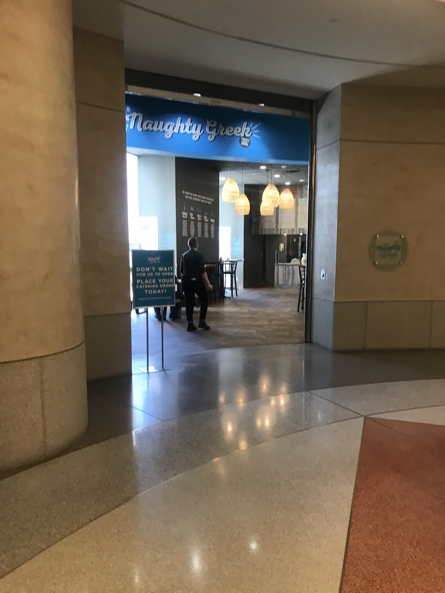 I visited the new Minneapolis skyway location in the Capella Tower today for lunch and I honestly wasnât impressed. I think the marketing or menu is a bit of a turn off because it appears that there is an extra charge for so many things. For example I got the rice bowl so there is a $3.00 charge for that, then I pick my protein so there was an additional $8.90 charge for that, I get veggies added on at no cost, but then to get some type of sauce I am looking at another $1.50 charge for that and then adding Feta cheese is another $2.00 there too. Looking at that and seeing that everything is extra is kind of a turn off. It is like well what just comes with a standard order? It just doesnât appear that the pricing is very friendly to the customer. My food was alright but not something that I would typically spend over $15.00 on for a lunch which didnât include a drink or fries. My husband got a gyro and that was about $10.00 and it wasnât large it was pretty small in comparison to typical gyros. The experience was meh at best. I wouldnât plan on going back. I can say that if you want a great traditional Greek meal for a reasonable price go to the Trieste CafĂ©. They have much better options and pricing. The next place I would go to over the Naughty Greek would be the Greek Grill. Heck I would even go to Andreaâs pizza to get a gyro from them before going back to The Naughty Greek. Sorry, not sorry,...