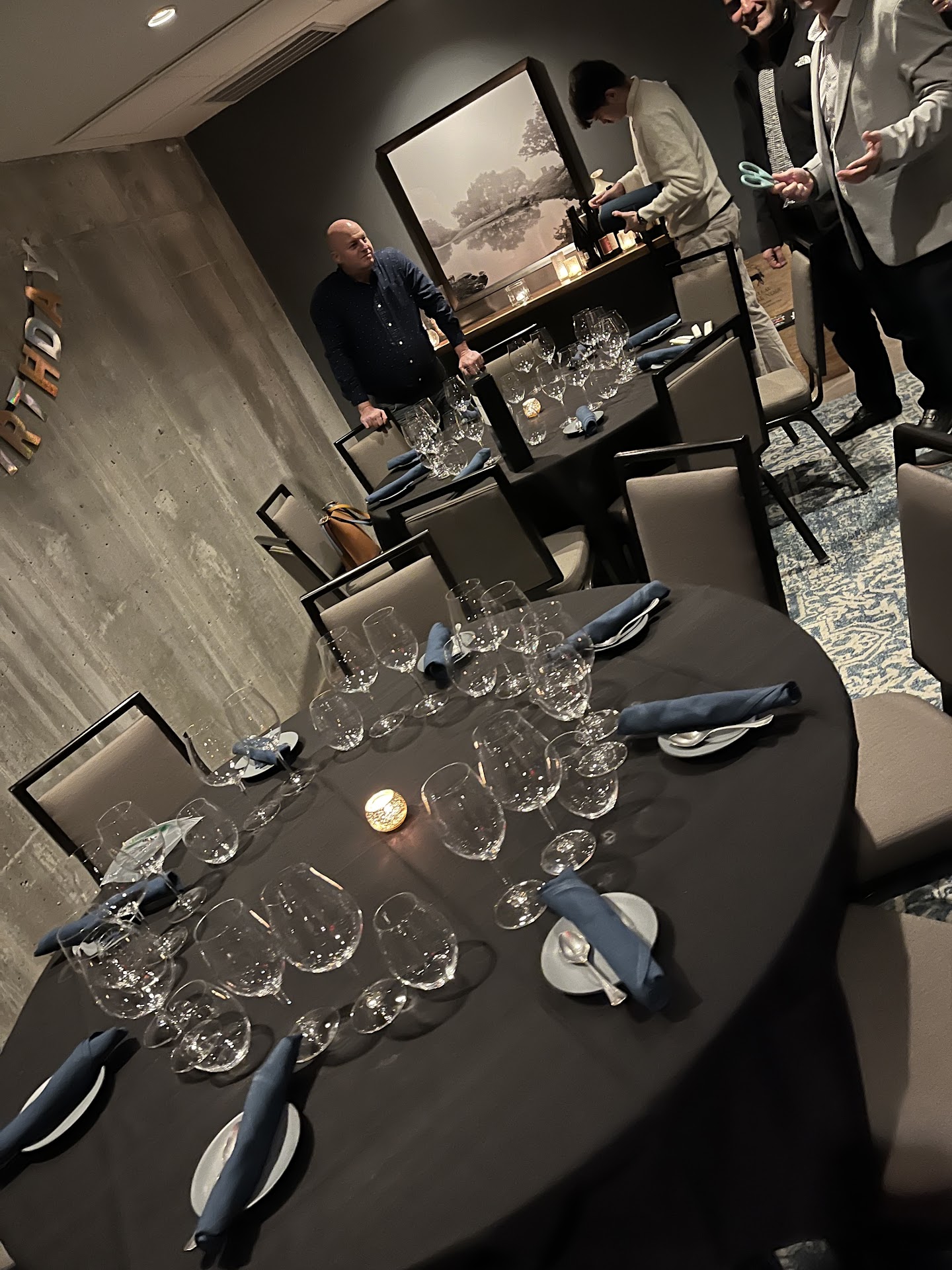 When we discovered The Tasting Room we were looking for somewhere special to celebrate my Husband’s 50th birthday. We came to the Tasting Room and I contacted the owner and head chef, Nico, over email. Nico was very responsive and provided great communication the entire time, making the planning process much less stressful. Nico was able to accommodate all our needs easily. Once we got to the restaurant, we were escorted to a beautiful private room in the establishment's basement. The room was designed to resemble a speakeasy and had a large wine cellar in the back of the room. Once everyone arrived, Nico began to present a wine tasting to us himself. He was very knowledgeable about the wines and was able to present that information entertainingly. The wines he had picked out tasted delicious as well. Along with the wine tasting, Nico and his marvelous staff served a wonderful dinner consisting of Black Caviar, Olive Oil Poached Salmon, a wonderful Wagyu Beef Zabuton, and more wonderful items. Throughout the entire service, the staff was attentive and kind and ensured that we and our guests were taken care of. For the high-quality service, the price was also quite reasonable. We recommend the Tasting Room to anyone, and we will be...