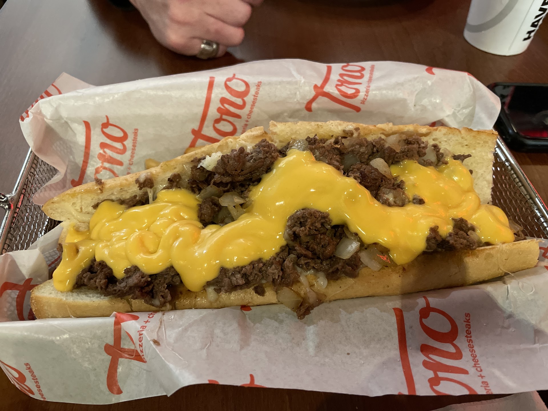 I think the expectation for a cheesesteak is for the meat to be loaded to the top of the bun along with the toppings (also as pictured on their website). On the larger cheesesteak, it hardly reached the middle of the bun. I ended up having like 3" of bun left after I finished the sandwich because I kept moving meat over to have a bite that wasn't just 75% bread. I also ordered extra cheese on that one, and I'm glad I did - it felt like a regular amount of cheese for a cheesesteak.