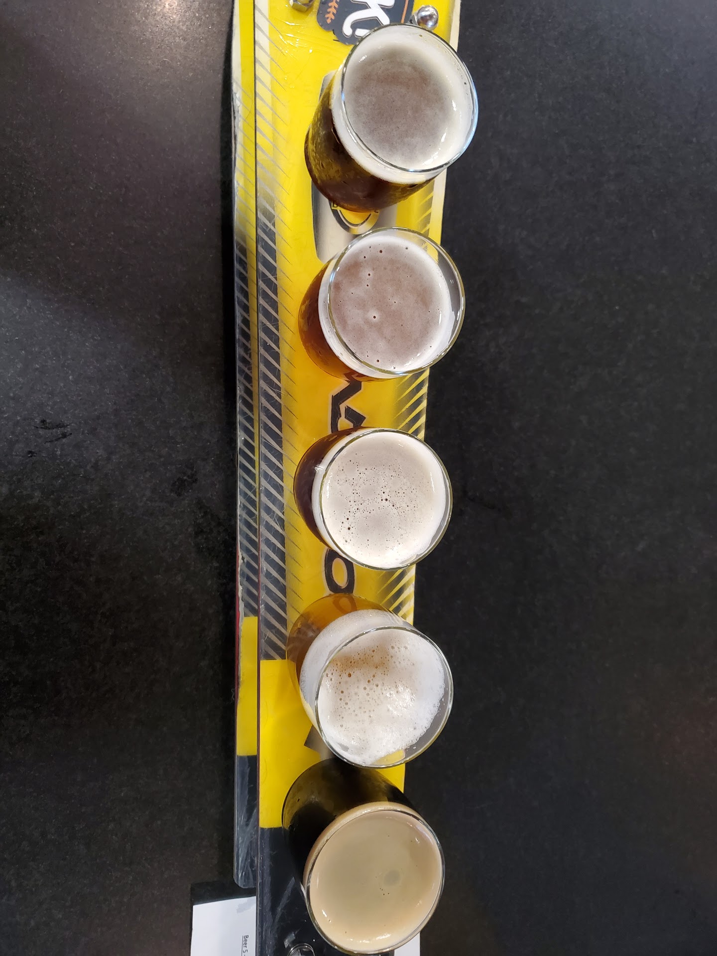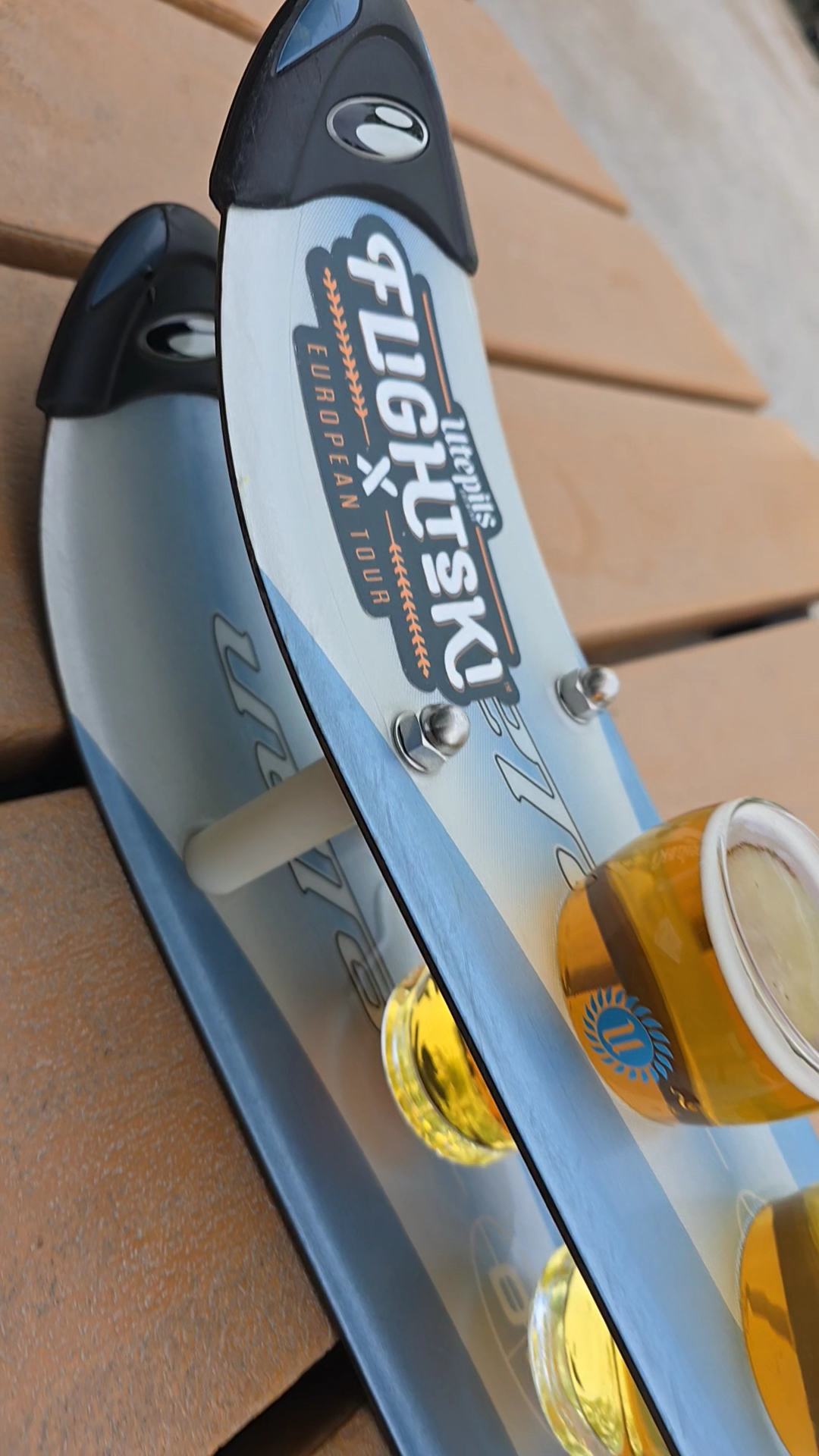 You can also get beer flights here, and this place has one of the coolest flight presentations I’ve seen: a pair of half-skis holding five beers each.