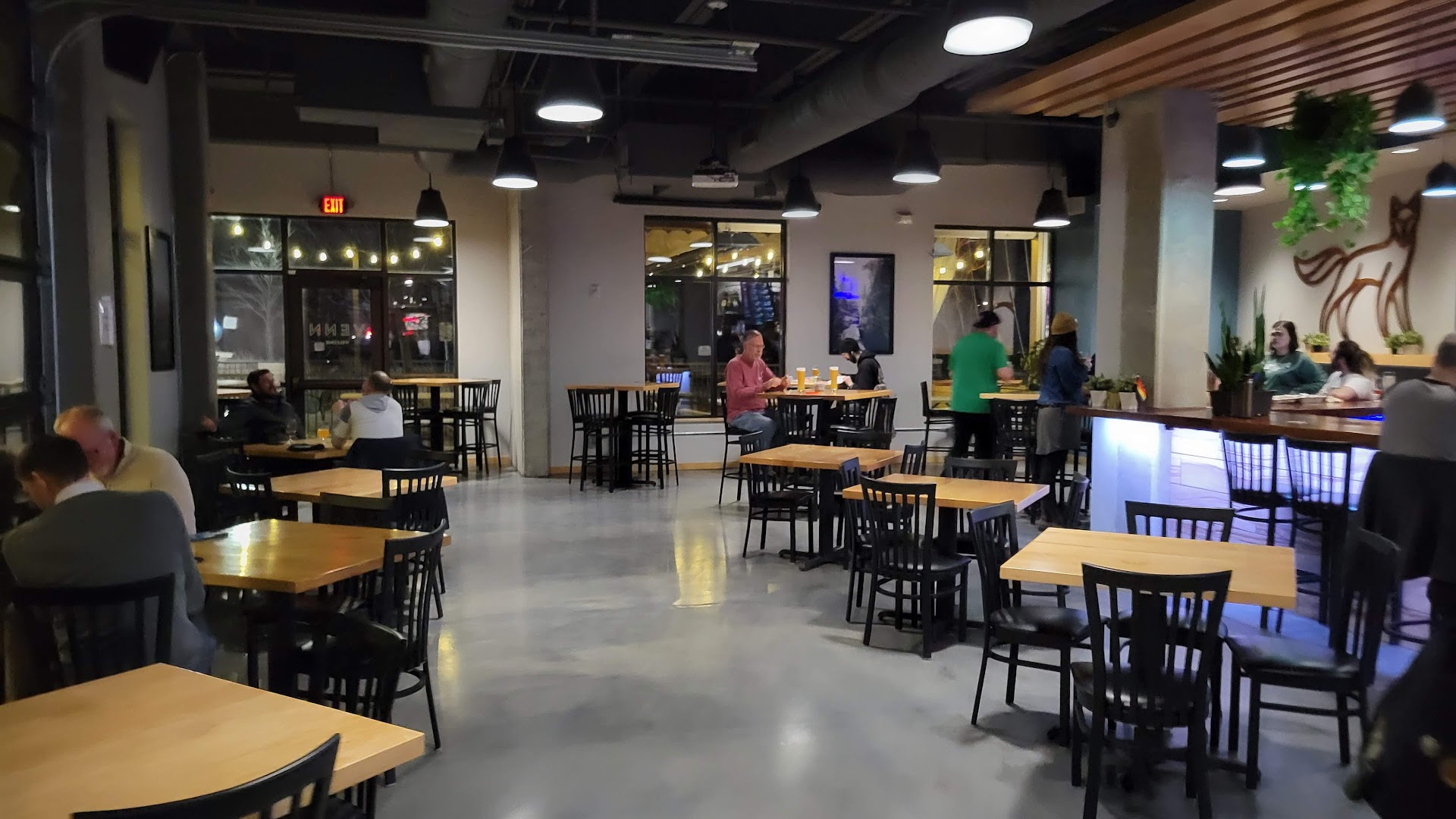 Always great beer. I love the Cosmosis sour series and the New England Hazy Tea. Usually have food trucks. Open early, serving coffee/tea/beer. Ideal remote/WFH alternative. THC drinks for here or to-go. Children tend to roam as if it's a daycare, with little adult control, and this brings me to the dogs: