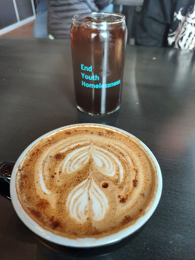 Read moreI was working up the street this particular week so I came here during my lunch. They were pretty busy but the staff was still very patient and welcoming. I got one of the seasonal lattés and a plain, single shot of espresso. The coffee was okay. Maybe a bit less full-bodied than I would like. I also got the latté with half flavoring so I could taste more of the espresso but the syrups still totally wiped it out--probably due to the coffee being less-robust. I liked the space in the shop even though I enjoyed my coffee outside. I think they could probably fit a few more tables indoors. There were lots of people doing work and meeting. It's a nice concept, and they support a good mission. I'll have to come back and try...