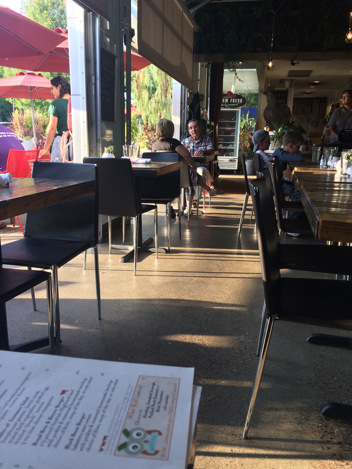 Read moreFood gets 1 star. Service gets 1 star. My husband & I made reservations for 5:45 to leave plenty of time to make a 7:30 play. We needed every minute because the service was so slow. We were seated at a duce against the wall where we were promptly ignored. No water refills were offered until we asked for the check. I drained my glass and drank most of my husband's. I got a black bean burger with fries. My husband got the Brie burger with fries. The fries looked so much better than they tasted. The fries were crispy on the outside, under-cooked on the inside. The homemade ketchup made with green tomatoes didn't cling too well to the fries, but it was tasty. The bun appeared to be supplied by Cub Foods. We shared the Plato salad--it was good. Wyatt, our server, appeared to be a newbie. Was slow to take care of us. He never mentioned the soup of the day. You should look at the chalkboard yourself for beers on tap and specials, because our server never bothered to tell us about it. We preferred a better 2-top, but we're told by the woman in charge it was reserved. When the young couple appeared at 7:00, the woman in charge served them. She walked right past our empty water glasses with picture of water in hand. We tried the vanilla custard--it was just okay. The rosé wine and the Bauhaus Wonderstuf was tasty. After spending $51 per person for burgers, fries, salads, 2 glasses of wine, 2 glasses of beer, 1 scoop of custard, and subpar service, I can't recommend this place and won't be going back anytime soon. With so few tables filled for an early dinner, I thought the service would be better than slow and I certainty didn't appreciate having an empty water glass for half the meal. My husband's empty beer glass sat there...