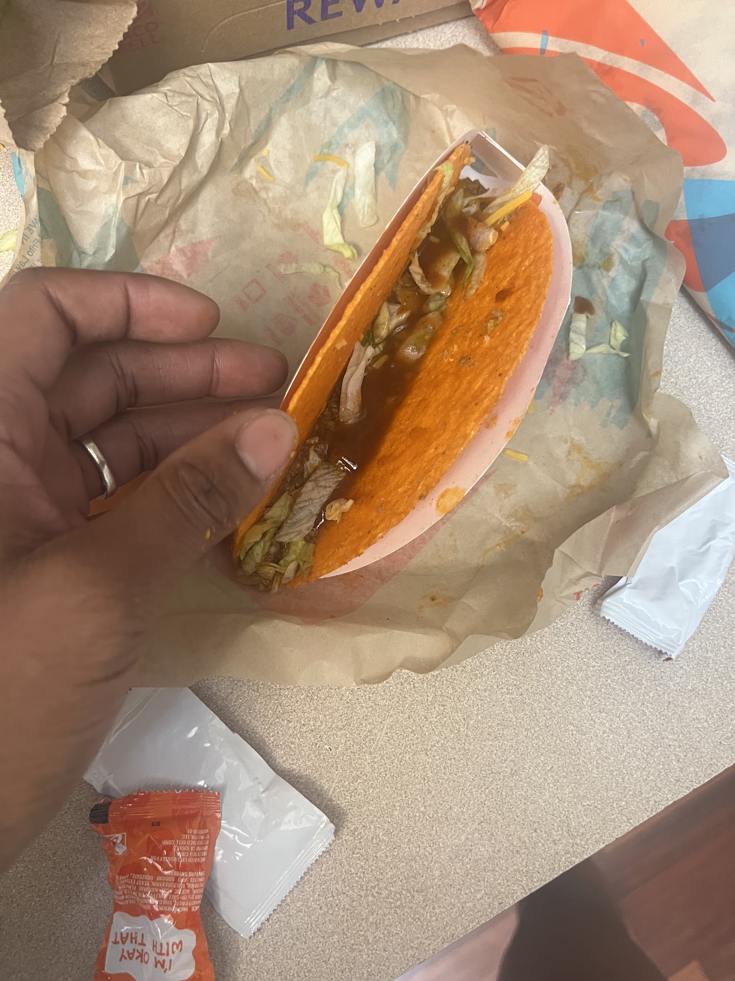 So not only did I not get the order that I paid for, but the substitutes were neither equivalent, nor correct, and we were missing a taco all together. Every single one of the crunchy tacos had broken shells, one I’m pretty sure was created from 2 mismatched shells.
