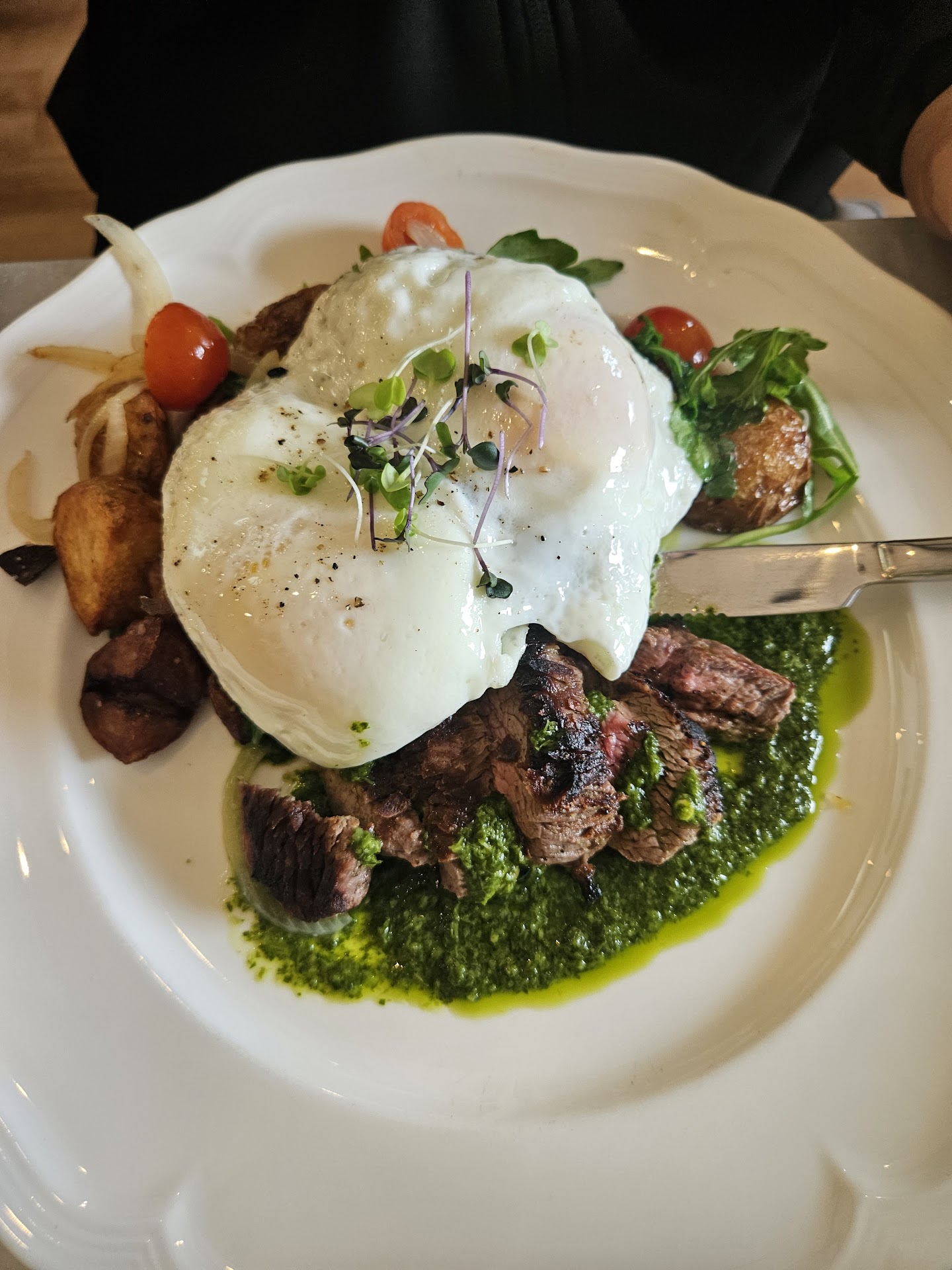 Food: I thoroughly enjoyed the food! I had the carnitas eggs benedict, and my husband had the steak and eggs. We pretty much cleaned the plates. They were delicious. We also got non alcoholic beverages along with it but didn't enjoy it quite that much. The passionflower drink and the lavender lemon drink, I would not recommend them.