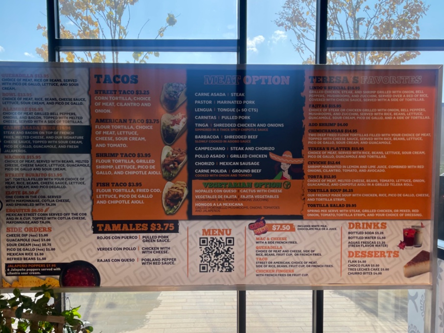 Taco Teresa's is exactly what the name says. They excel in tacos, burritos, and fajitas. I will start off by saying you might have to clean the table you want to sit at because at busy times, they don't have time it seems to clean. You order at the register, and someone brings out your super authentic Mexican cuisine. The chip bar and lots of salsa are available while you wait. They were very good chips and the variety of salsas didn't leave you bored at all. They didn't have fountain soda, so cans or Jarritos were the options. The Jarritos were a great option to go with the grub. The chicken fajitas were amazing. So much food. The chicken was juicy and flavorful. The beans had a bit of zip to them, so be careful. The Chimichanga was again great. Everything tasted exactly like you would want them to and imagine real Mexican to taste like. My one problem was with the Pollo Tamlae. Tamales are my favorite food items, but theirs didn't hit at all. The corn meal was extra dry, and there was little to no chicken in the tamale. It was a complete letdown. It was ultra bland and for the cost, not even close to worth it. The Churros were what you thought they'd be. I recommend everything but the Tamale. Go have a quick bit at Taco Teresa's. You won't...
