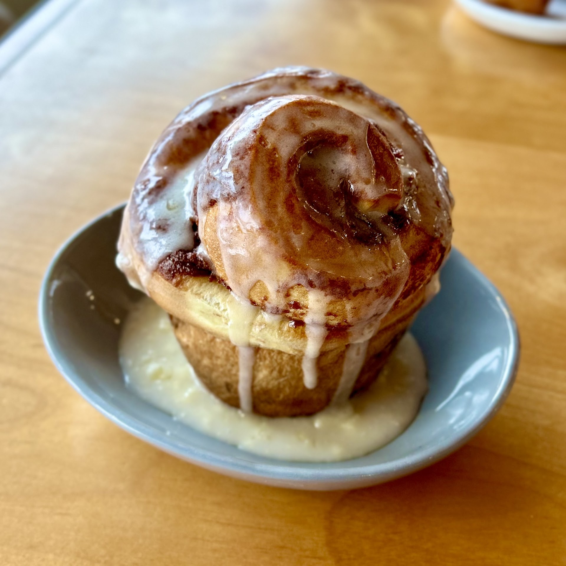 The cinnamon roll had nice flavor but was a little dry. It was also more of a muffin style cinnamon roll which was an interesting take!