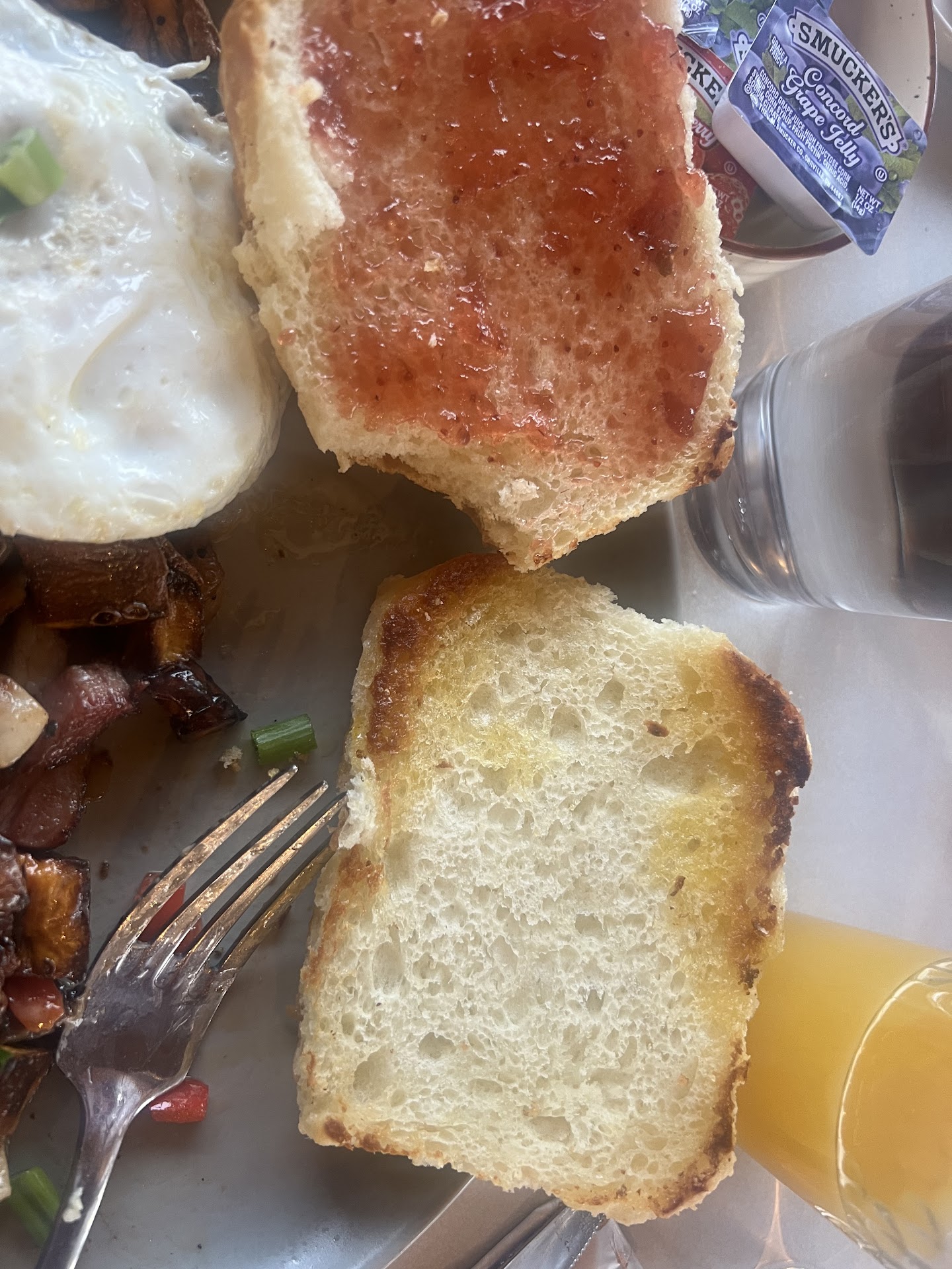 I ordered the smokehouse hash which had brisket in it and the meat was dry and a little tough. The portion of the hash was a decent size but it was pretty bland and needed to add salt and pepper. The egg’s however were cooked exactly to order which was nice.