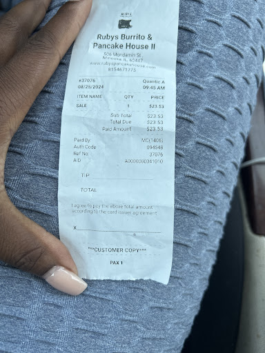 Read moreI had the opportunity to finally try this place after passing it every day on my way home from work, and I must say I shouldn't have waited so long to do so. 1st, it gives you old diner vibes with the big opening that you can see through to the kitchen, and the waitress gives the cook the order slip directly. The actual restaurant is smaller than it looks from the outside. However, when I went, I was one of two occupants. The service was great, and my waitress catered to my every need. I tried the Denver omelet with hashbrowns and pancakes, and yes those were options that came with the Denver omelet, and I tried the steak and egg burrito. The pancakes were fluffy, and didn't disintegrate when the syrup was applied. They soaked up just the right amount of syrup, and held together when picking up with the fork. The last thing you want is your pancakes falling apart. The hashbrowns had the right crunch to soft ratio I like myself. The omelet is my go to breakfast at any establishment, and this kept in the consistency I like, however, I will ask for extra cheese the next time, as i like my omelet a with extra cheese. But for me, this trips star of the show was that massive steak and egg burrito. It comes with tomatoes, cheese, lettuce, and beans, but I added cilantro and onions as well. The burrito was huge, and stuffed with everything stated. There was not one bite that didn't have everything in it. The outside picture does the inside no justice, cause the cross cut shows just how stuffed this burrito was. I'm definitely going to try...