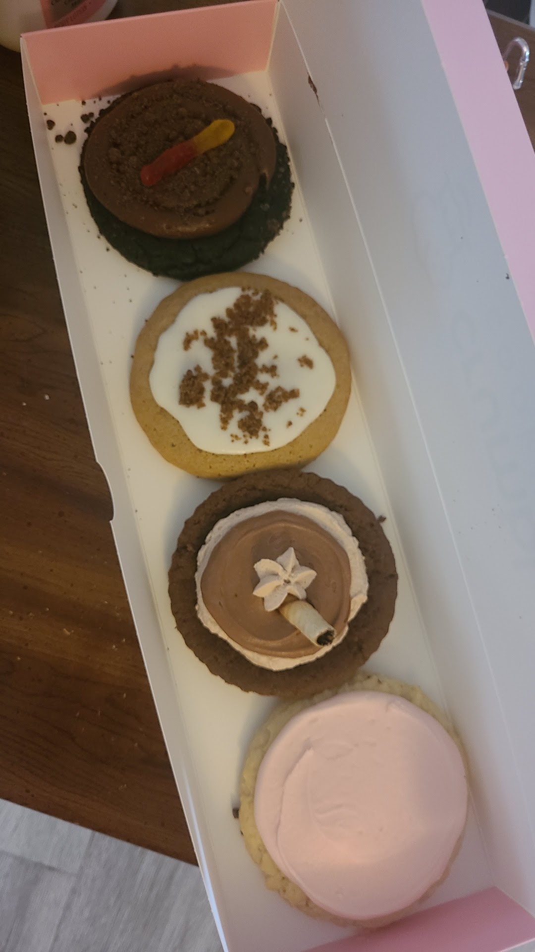 Read moreCrumbl has always succeeded all expectations! From California to North Dakota, every crumbl order I've placed has came out perfect...expect the one I made today. If it wasn't for this little hiccup I would have given it a 5 star review. I ordered the Thanksgiving week 6 pie box with 5 pies and a cookie because they were out of apple pie 🥲. The pies and the cookie were delicious. But I also ordered 2 chocolate milks that were gross. The label said "use by Jan 2025", however they were both disgusting with one of them having black mold right under the rim of the bottle. I dont blame Crumbl. These milks were completely sealed and the problem probably started at the location they came from. I just wanted to make it known that the current batch of milk should probably be thrown out and someone from the Crumbl store should contact the milk provider they use. Nothing against you Crumbl! I will continue to buy your wonderful goodies....just probably not the milk.