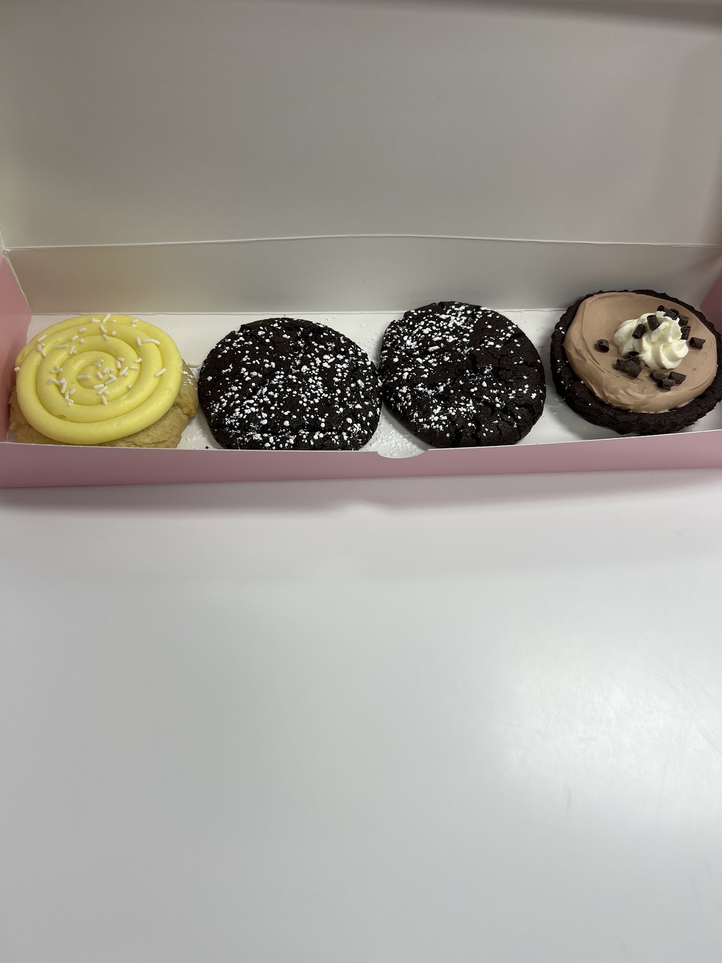My mom and I stopped in to try the shop. The staff was friendly but we thought the price was a bit excessive and the selection was small. For a dozen cookies its $50 and for 6 it was $30. The size of the cookie is a large so a bit larger than the palm of your hand. When we actually tried the cookies we found them to be almost raw they were so under. We could even smell the cookie dough when we opened the box instead of baked cookies. I did like the lemon curd that was on top of a sugar cookie but the sugar cookie was way under baked and was more like a short bread than a cookie. Would not recommend. We even commented on the price for the size and the lady even tried to tell us they were huge and she wouldn’t be able to eat a whole cookie. They weren’t that big of a cookie. Size wise the cookie was the size of two standard size cookies and I don’t know anyone who can’t eat two cookies in one setting. Hope this helps. I like to read reviews as I don’t like to waste my money but I was truly...