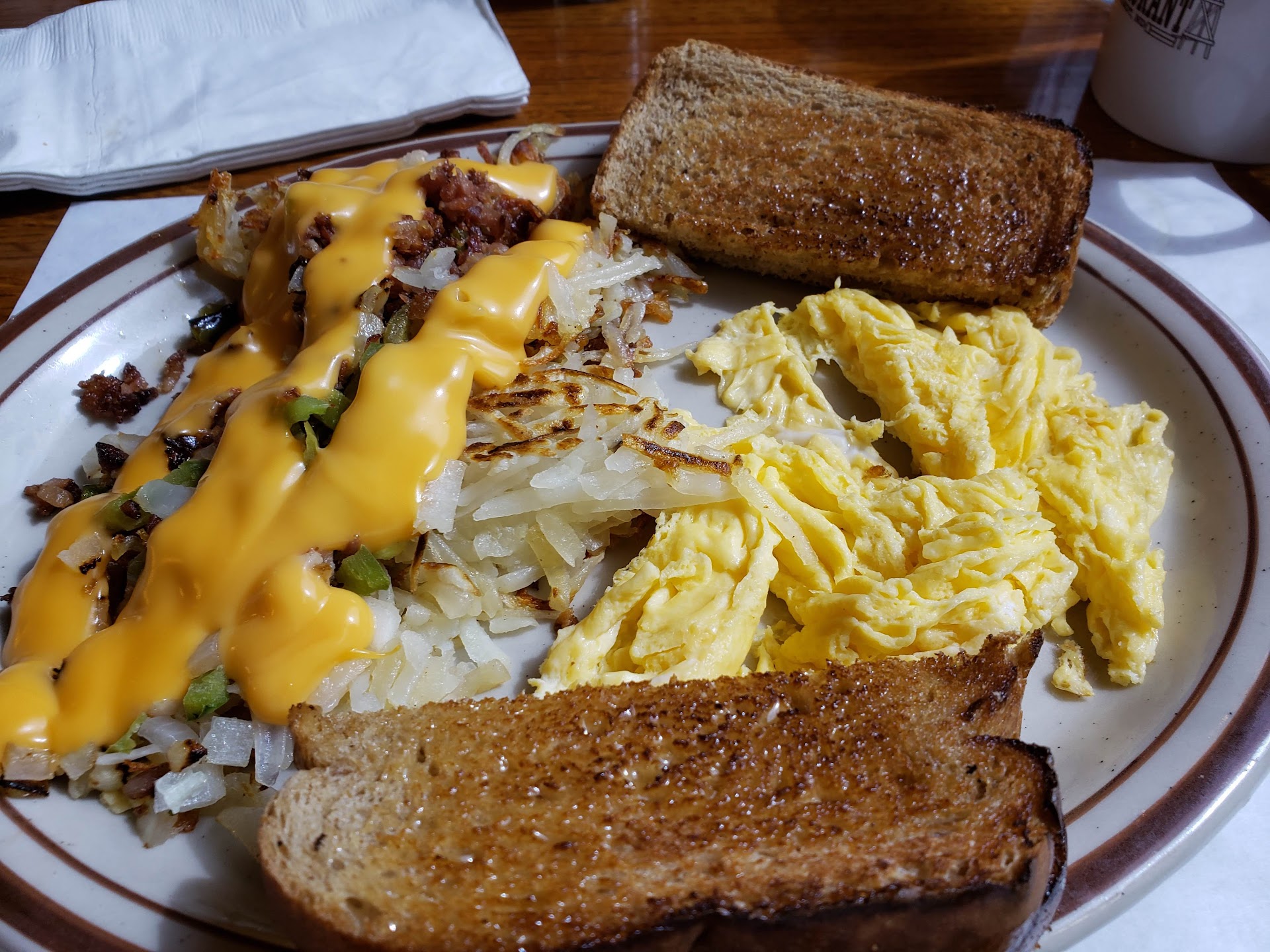Read moreDO NOT GO HERE! Horrible service and food is bleh. I wish I had at least one nice thing to say..but I honestly don't. Waited to be sat for 10 min. while the worker stood and rudely answered the phone multiple times(had a rude tone with people on phone)..didn't put them on hold with 4 customers waiting right in front of her..other worker comes says whos next my husband raised his hand and said "us" as another man also said he thought we were and pointed to us, she stood there and just said "next" again and when she went to sit us down she just seemed so angry and bothered by showing us a table to sit at and she got us water but never brought straws and the cups looked dirty. When ordering she kept cutting us off and had a rude tone on her voice and again seemed angry and when bringing us our food the other woman who was in the front came with her and they were tossing the plates down in front of us and dropped my husbands toast off the plate just said "whoops" shrugged sat it back on the plate didn't say sorry or offer another piece of toast(tables looked decent..but who wants their food thrown on the table)..when my husband went to pay the worker was very rude with him and tossed his card back to him when she was done and WATCHED him like a hawk as he wrote the tip down and then says "soo...$10?"..not to mention the food was gross and I will never go back here nor would I recommend it to anyone ever...I don't even care their prices are fair...it definetly does not make up for the bad quality food...