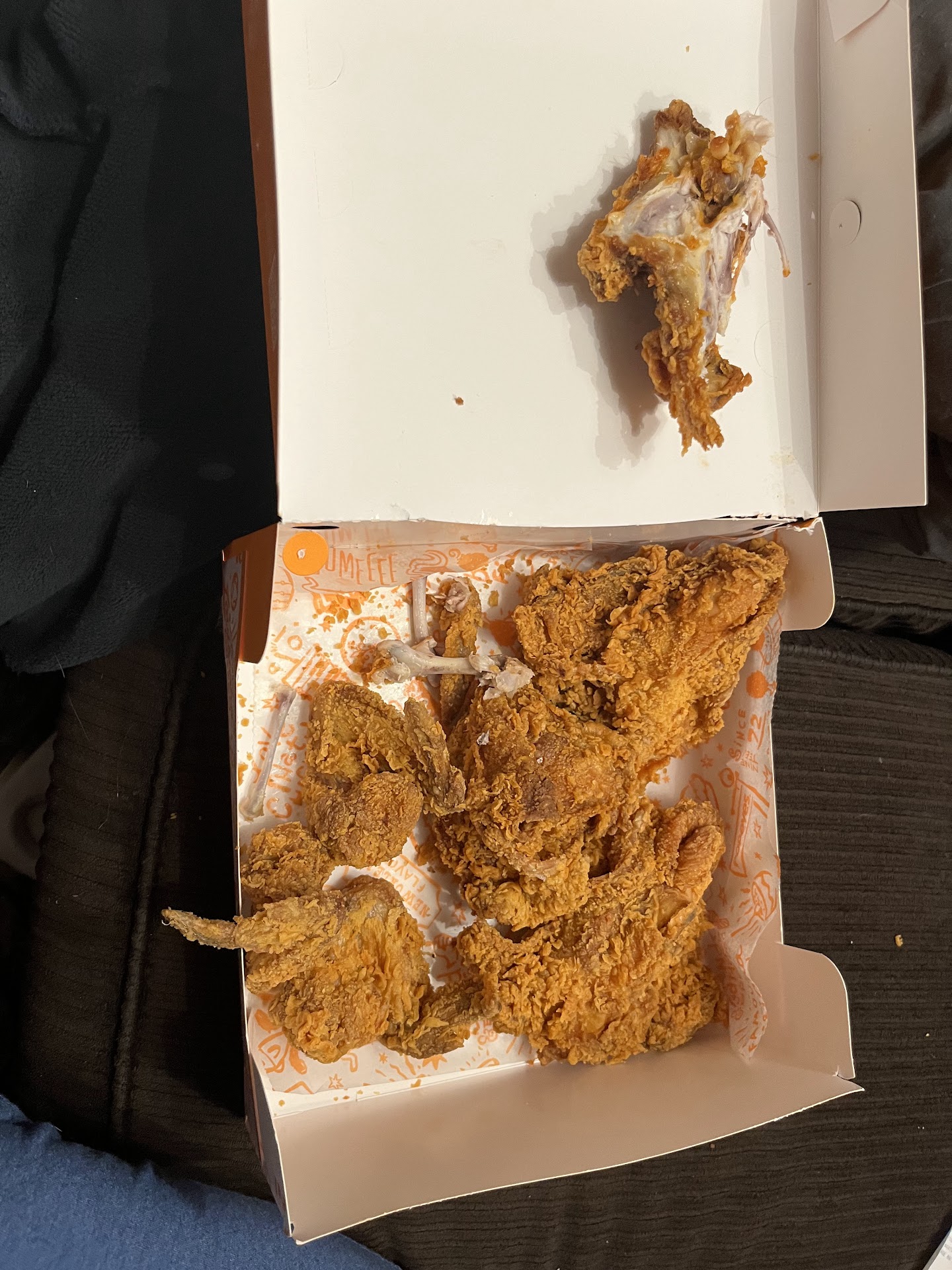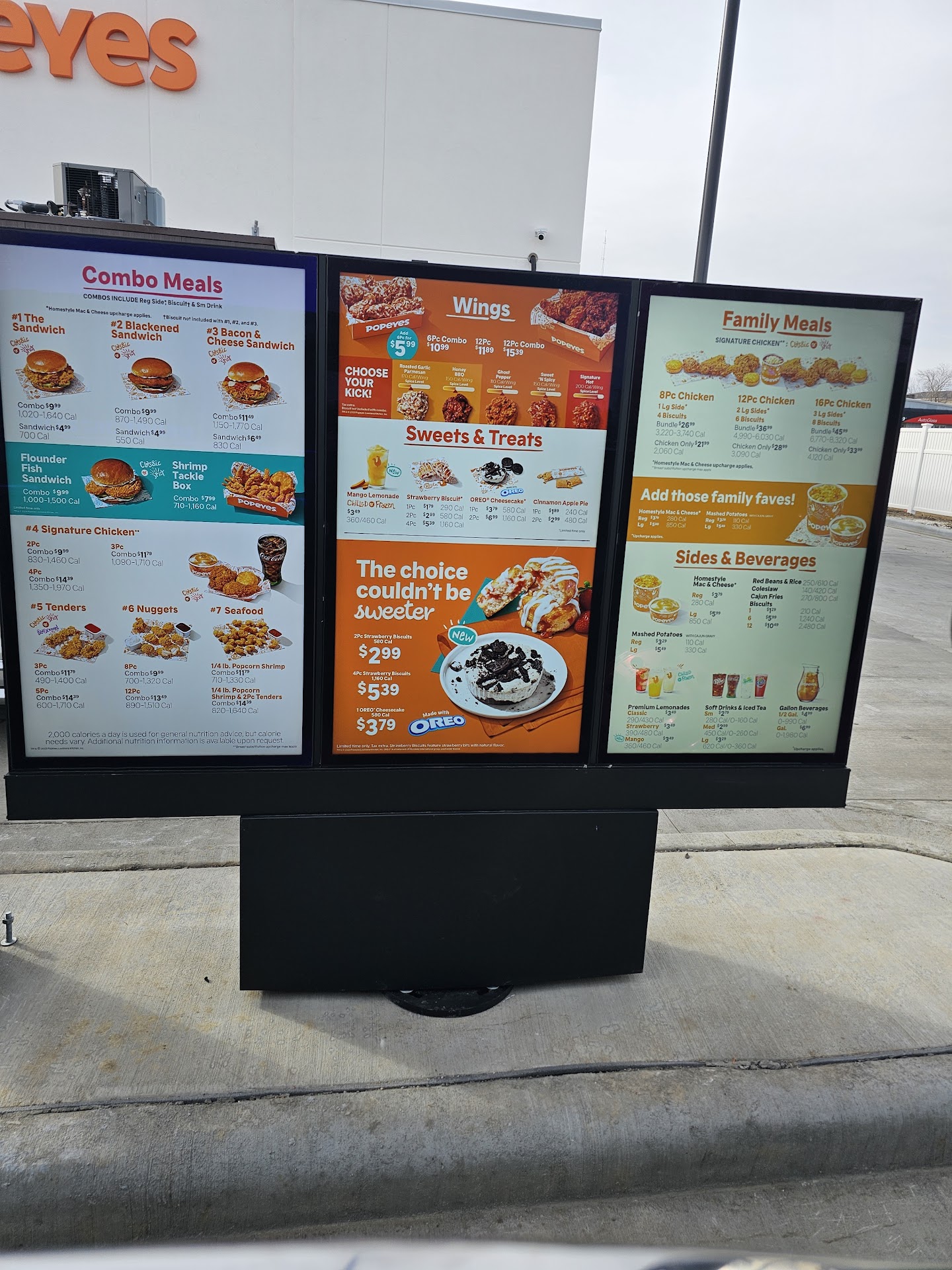 Read moreWent in little over an hour before close. Tried to go through drive through nobody answered for awhile so I went inside. (They were playing loud music) we ordered our food and sat down to wait. Then was told they were out of mostly everything we got so we had to substitute. They even mentioned they did have bone in wings that we ordered but there manager was saving them for get “mans” so glad to know her bf was more important then us! Then we finally got our food which was boneless. Got in the car to eat and they gave me the wrong sauce went back in to get the sauce and was told it was because they were out. And gave me a sauce that was “basically the same” and after all that the chicken was nasty and EXTREMELY DRY. And tough like eating rubber. Like they gave us the last that had been sitting all day. And the mashed potatoes tasted like water clearly not real mashed potatoes even the sauce they gave me was nasty. I didn’t eat anything after my first bite and ended up going to McDonald’s feeling like I wasted my money. Extremely extremely disappointed with the terrible service and gross old microwaved tasting food do not recommend first time going to Popeyes and never...