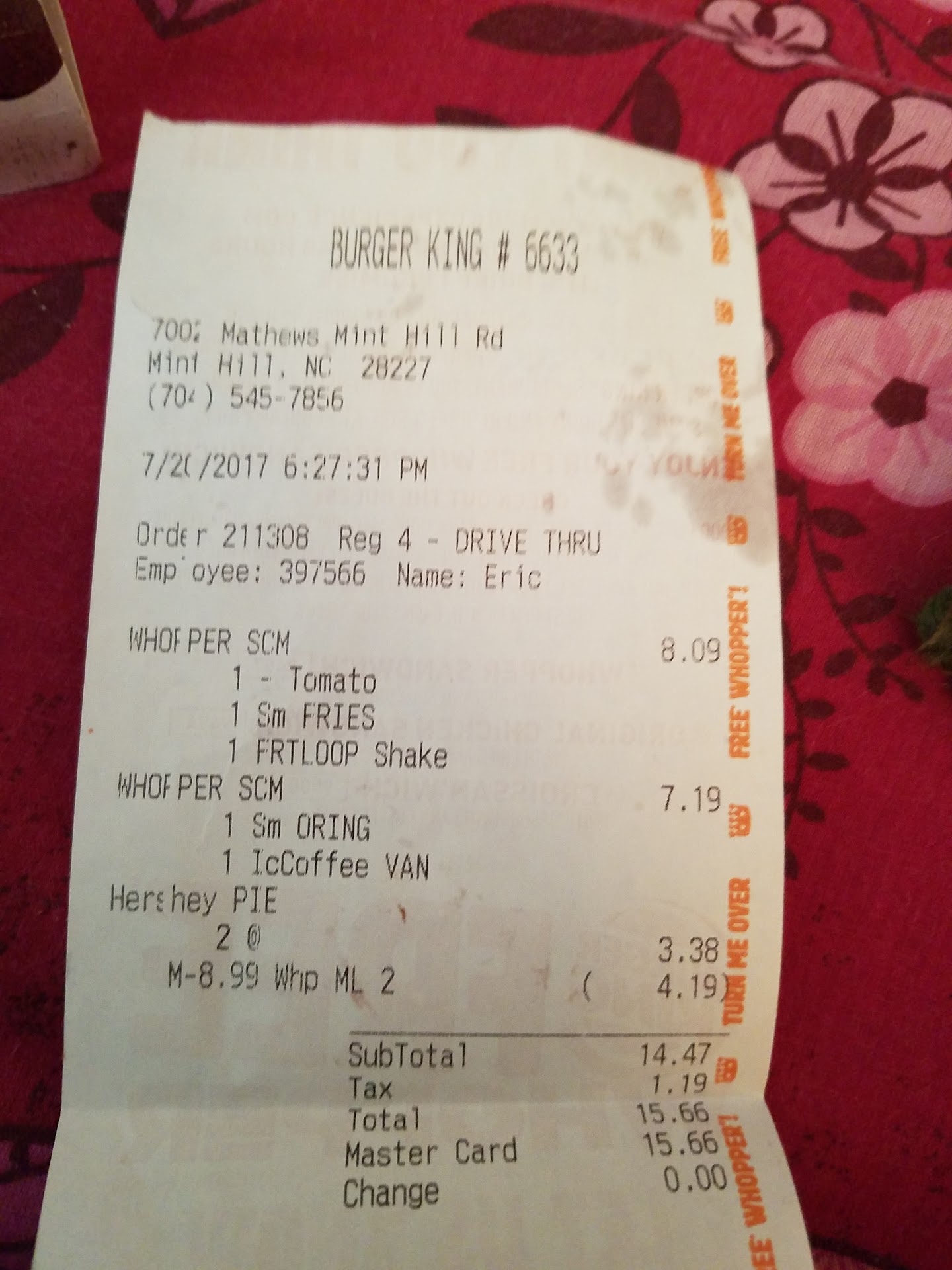 Read moreOnce again, wrong order from drive thru. Order: 284192 Reg 4 DRIVE THRU, Employee: 11245 Name: Habib