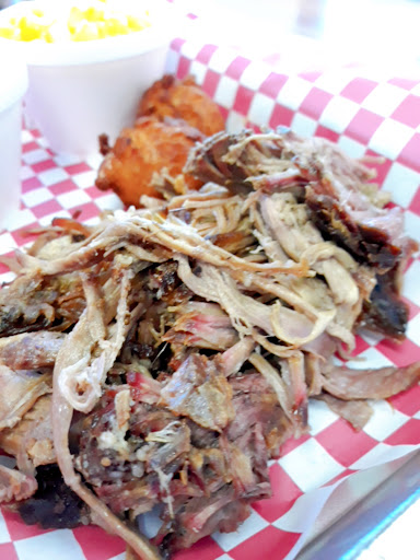 Read moreI tried out this bbq joint for the first time today and was really thrilled with them. For starters, the workers greeted us warmly and didn't rush us with our orders. They were wearing the proper ppe including the mask. Hand sanitizer was accessible for anyone to use and the restaurant was extremely tidy. The atmosphere was really laid back. The food came out instantly, which was greasy, since I was starving. It's been awhile since I've eaten real Carolina BBQ. This was absolutely delicious and pleasing. I decided to get the Brisket Platter. I chose hushpuppies over the bun. My sides were mac and cheese and red slaw. The brisket was absolutely amazing. Not dry like most places I've been. I went with the Sweet Tomato sauce to add to it and it was amazing! I was throughly pleased. The hushpuppies are definitely above average. Soooo good! The mac and cheese was extra cheesy and delicious. I never had red slaw before. If you're used to standard cole slaw, this is definitely different. It's not as sweet. It was quite tasty if you are into a more bitter type of slaw. I was thrilled to see that Cheerwine was a soda option here. Naturally, I got it. The price is great! You definitely get your money's worth worth the platter. I left quite satisfied. If you want good, Carolina BBQ, I highly suggest trying...