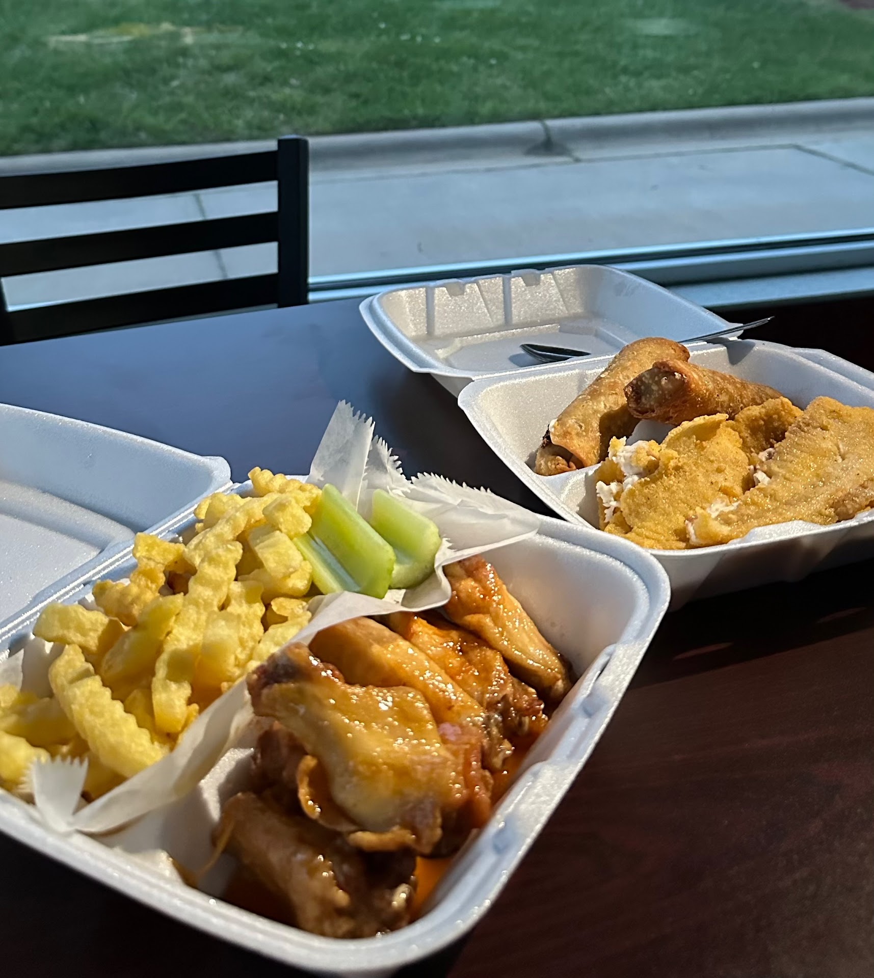 Read moreWanted to try because I live in the area. I ordered the Juicy Cajun Garlic wings. They were very good. They did have quite a bit of some type of oil or grease at the bottom, BUT, zI live about 15 minutes away. I got home poured off the grease/oil from the bottom AND THEY STILL WERE NICE AND CRUNCHY. I was disappointed because I thought the skin would be mushy, it was not and I am very impressed by that. My mate had the philly steak and cheese, his exact words were "It's meaty and flavorful." I didn't get a pic because he's plowed through it.😆 My daughter had the same wings and chicken fried rice, the rice was also very tasty and flavorful! I recommend Touchdown and you definitely get a bang for your buck and the portions are a good size. Very good though, definitely better than Wingstop...