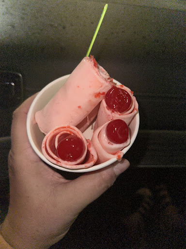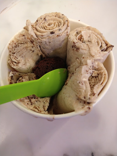 Read moreAn interesting place right across the street from our rented spring break condo. I had never had rolled ice cream but our grandkids were fans so we walked across one evening in the middle of our Mexican Train game. We waited in line for probable 20 minutes and it would have been longer had not a big group in front of us become tired of the wait and left. I am old, old fashioned and old school so would never pay these sorts of prices left to my own devices. The ice cream was good but not any better than Braums' or Ben and Jerry's. What you really pay for I think is the experience of watching them freeze and roll the ice cream. It was interesting and fun to watch. There menu was fairly small with about 8 choices for rolled ice cream but they were good about adding toppings on request. The people were very busy but were pleasant. There was no place inside to sit and eat which wasn't an issue for us. I don't know if this was a Covid thing or normal. There wasn't a lot of room inside and the space was filled with people waiting. Although most of our wait was...