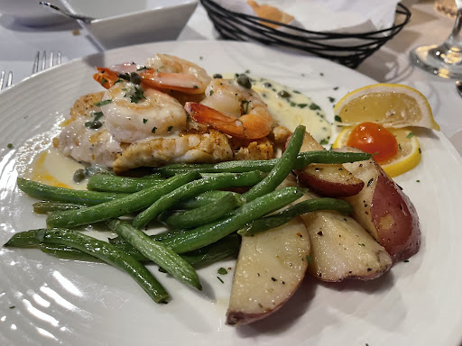 The grouper piccata was very good. There were several shrimp topping the grouper. the entree was also covered with a lemon butter sauce. It had an excellent flavor and the appearance was excellent when initially served.