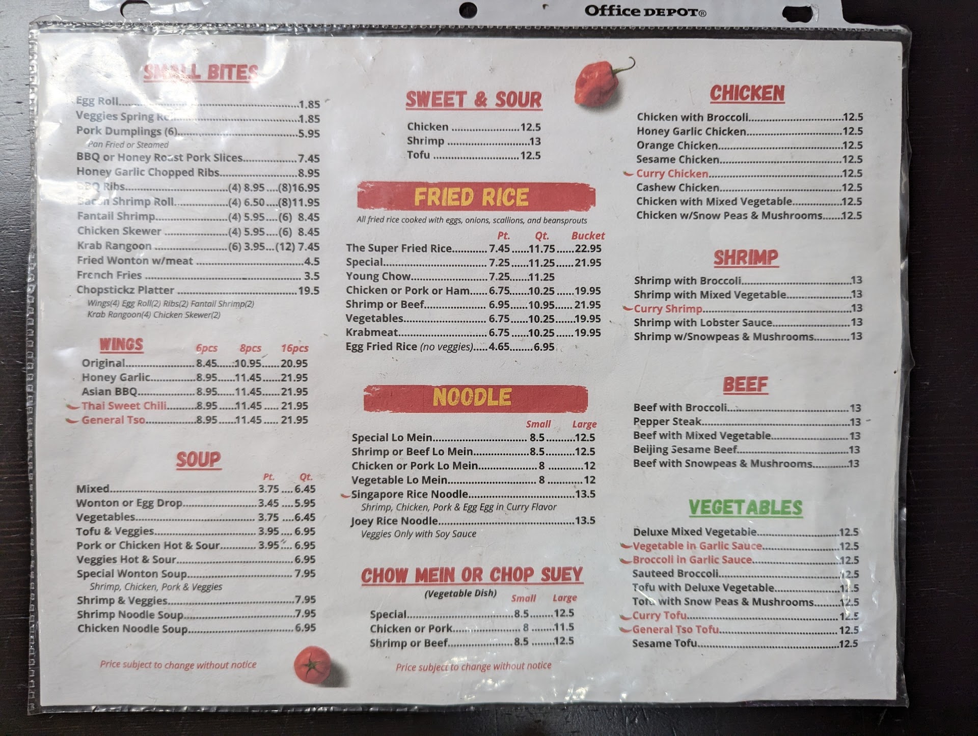 Everyone READ UPPPPPP This is a second chance Chinese spot for me! Let me explain the first time I tired it I wasss not impressed but but but but today I decided to give them another try! Why not everyone deserves a second chance right?! So first off the bat let me say the customer service is amazing I ordered delivery the guy who answered the phone was very nice he explained and he made a lot of offers in suggestions so that was really refreshing. I ended up ordering the lunch special with the beef and broccoli with steamed white rice I also got a quart of the chicken fried rice and I also got an egg roll. So fast forward to the delivery the time was it not that long I’ll say about 30 to 40 minutes but when the driver came he was absolutely so pleasant super nice I gave him a five dollar tip he was just absolutely amazing I just really really refreshing it almost felt like customer service at your front door it was really low so that was a plus. So for the food now this is why were out for Stores in at five because the now while the food was very hot the taste could improve a little. I took pictures and I’m going to upload them with this review so first things first the eggroll was your standard eggroll you know fried it wasn’t too heavy in oil it was very hot and yeah it was just really basic OK. Now with the beef and broccoli this had to be my struggle now the sauce was delicious but it was a little bit too watery for beef and broccoli for me so much broccoli oh my God it was a lot a lot of broccoli I don’t think that it’s necessary to put that much broccoli I feel like it was two servings of broccoli they could have broken down now it was delicious but is it like in flavor probably because the sauce was not as thick as it should have been and he did not have that rich flavor but it was absolutely delicious and the food was extremely high so I have no complaints on there the food taste fresh I have to admit it does not taste like it’s any reheated food or anything like that it was you know it was really good it was better than your basic Chinese food place from route. Now for my favorite which is the chicken fried rice oh my God I love everything about it is flavorful oh my God it is so delicious like the fried rice is amazing and again guys their food was delicious you know I think that is worth definitely giving it a try. Oh and the prices are not bad at all.
