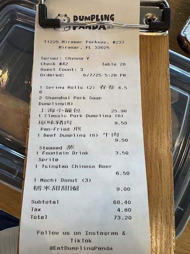 As someone still chasing the soup dumpling high I hit in Tokyo, my search in Miami and Broward has been... underwhelming. But then I found Dumpling Panda in Miramar, and things started looking up. Is it Tokyo-level? Not quite. But it’s the closest I’ve come so far—and I’ve kissed a lot of dumpling frogs to get here.