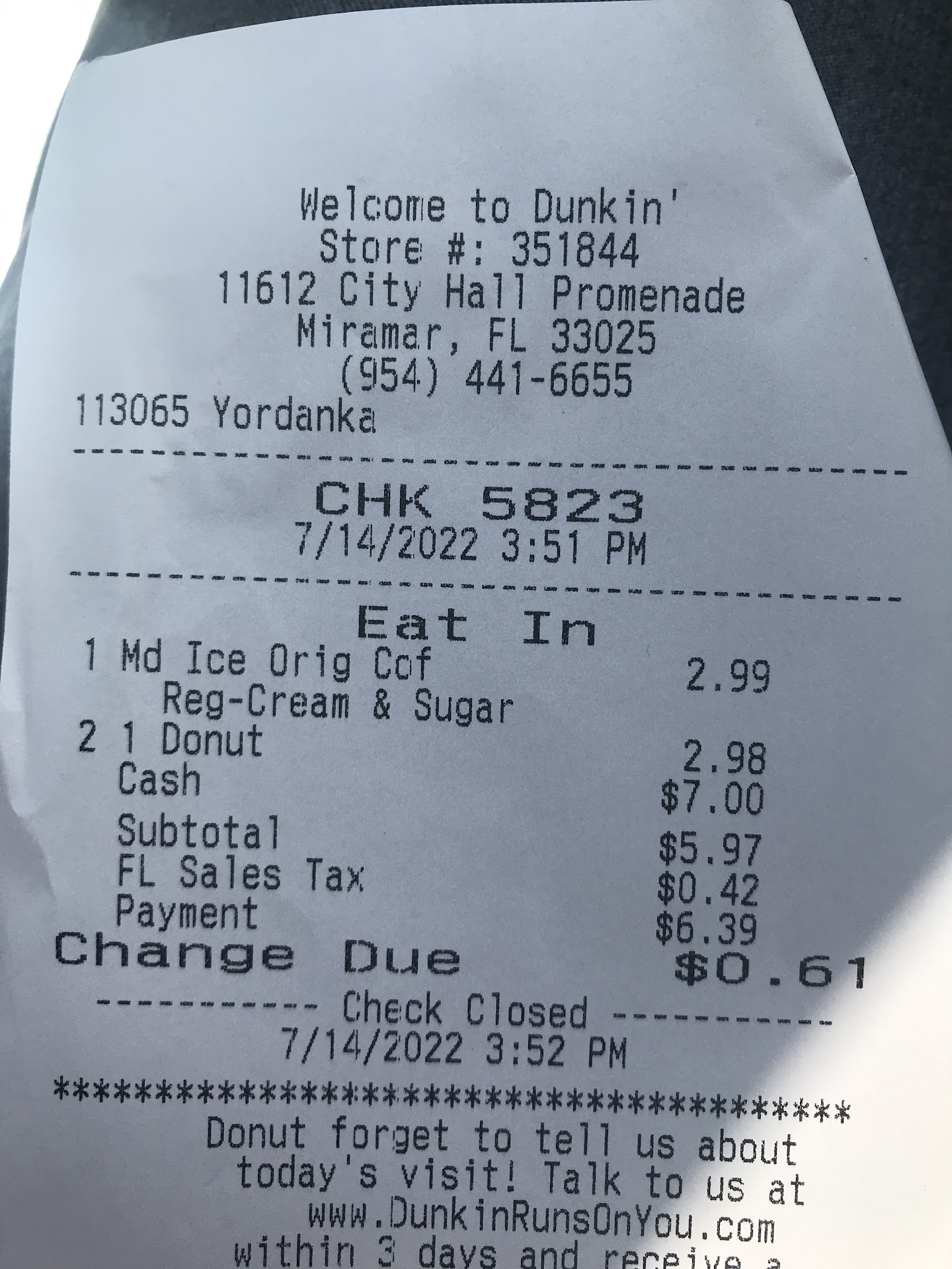 Read moreI live in the apartments right across the street and Everytime I go around7:30 the doors are already closed and this location closes at 8 pm .. tonight I went again and a young kid was inside cleaning & walked right by the door and didn't even acknowledge us.. on top of that this is the worst serving donkin donuts I've ever been to.. your drink will never be served the way it should. Your employees need to be retrained if not this store will Be closing soon. I completely understand wanting to go home on time but at least be friendly and communicate with the customer that you will be closing shortly. I've worked for Dunkins before and I know the closing procedure isn't fun but you knew that when...