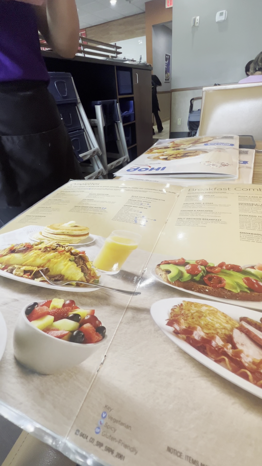 Read moreWhen we went it seemed quiet busy but by the time we were seated it had died down, expected the service to then be a lot faster, while waiting we noticed that a few persons had left without being served because they had been waiting too long, I went with family and my son has some special needs so an overly long wait wouldn't have been ideal.. I expressed this to our server who we finally got after inquiring a few times and he does a great job accommodating us and brought my sons food out first which I greatly appreciated,unfortunately that's where the pleasantries ended.Everyone was left waiting an obscenely long time as the establishment had now been close to empty when we inquired what was the wait we were told that online orders were priority as opposed to the seated customers orders and so we would have to wait, the staff was friendly which is a plus and we did notice another waitress who had seemed to be moving very quickly and had her section in and out in no time we had to commend her on our way out. When our food finally arrived (we had been there over a hour by this time) it was cold the pancakes were dry they forgot my daughters additional order which we didn't bother to mention as we were already frustrated and hungry. To say the least not the best IHOP experience I've ever had with the family and I live all the way down South so it was very disappointing to have this experience having travelled so far won't be choosing this location on my...