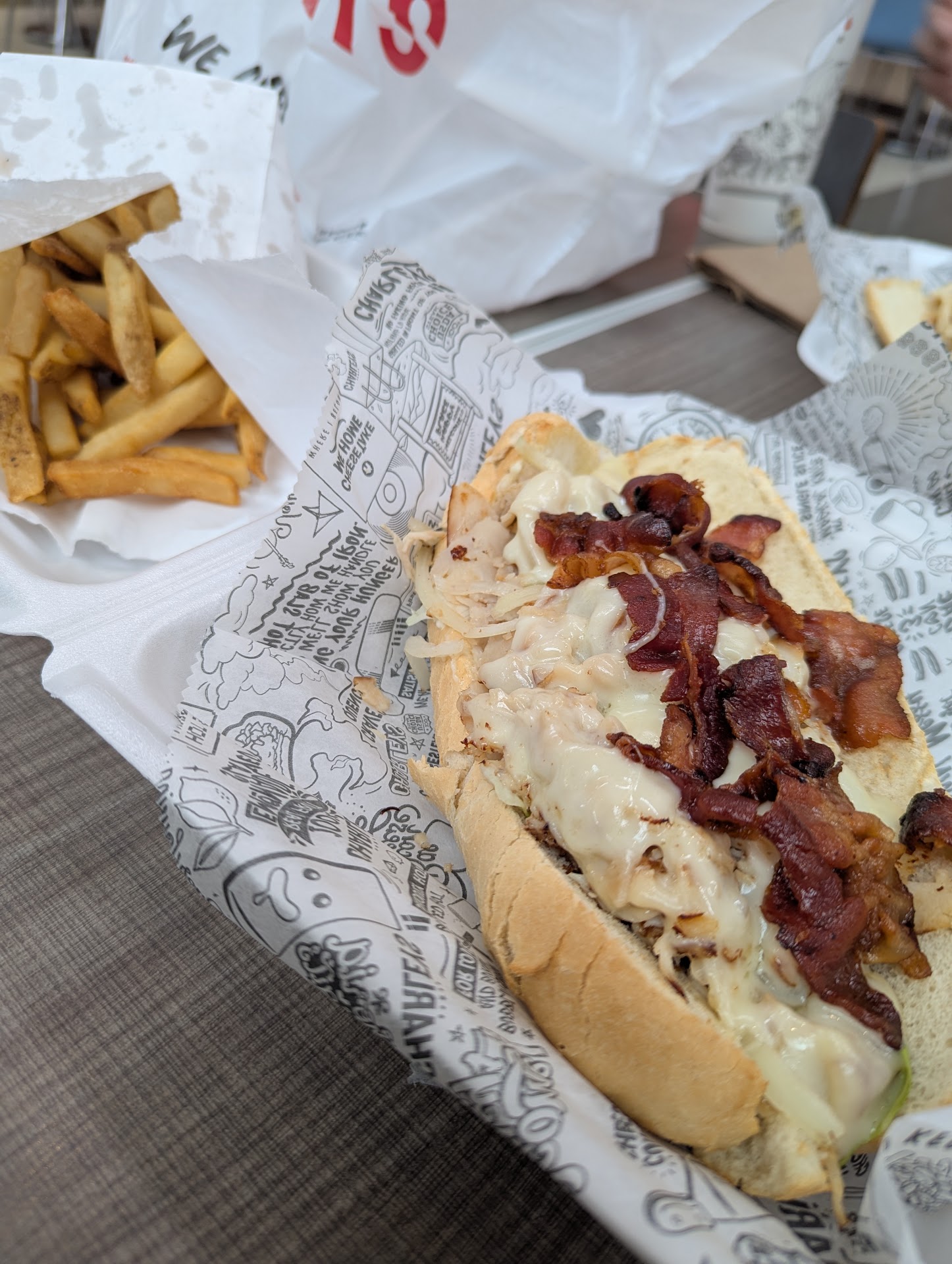 Had the worst experience ever. I usually go at least once a month. On 3/18/21, I ordered 2 philly steaksandwiches, one regular, and one large. The cook ended up burning both sandwiches (the steak meat), and the other kid who put the sandwiches together ended up not adding any of the fixing's I wanted and then placed both sandwiches upside down in their packaging. So when I went to open both of them the sandwiches were both completely fallen apart and spilled everywhere. To top it off the kid that was making the sandwiches kept cursing in Spanish for no apparent reason. For spending $20.00 plus on 2 sandwiches, it was a complete waste of time, and money.This is the University Park Mall in...