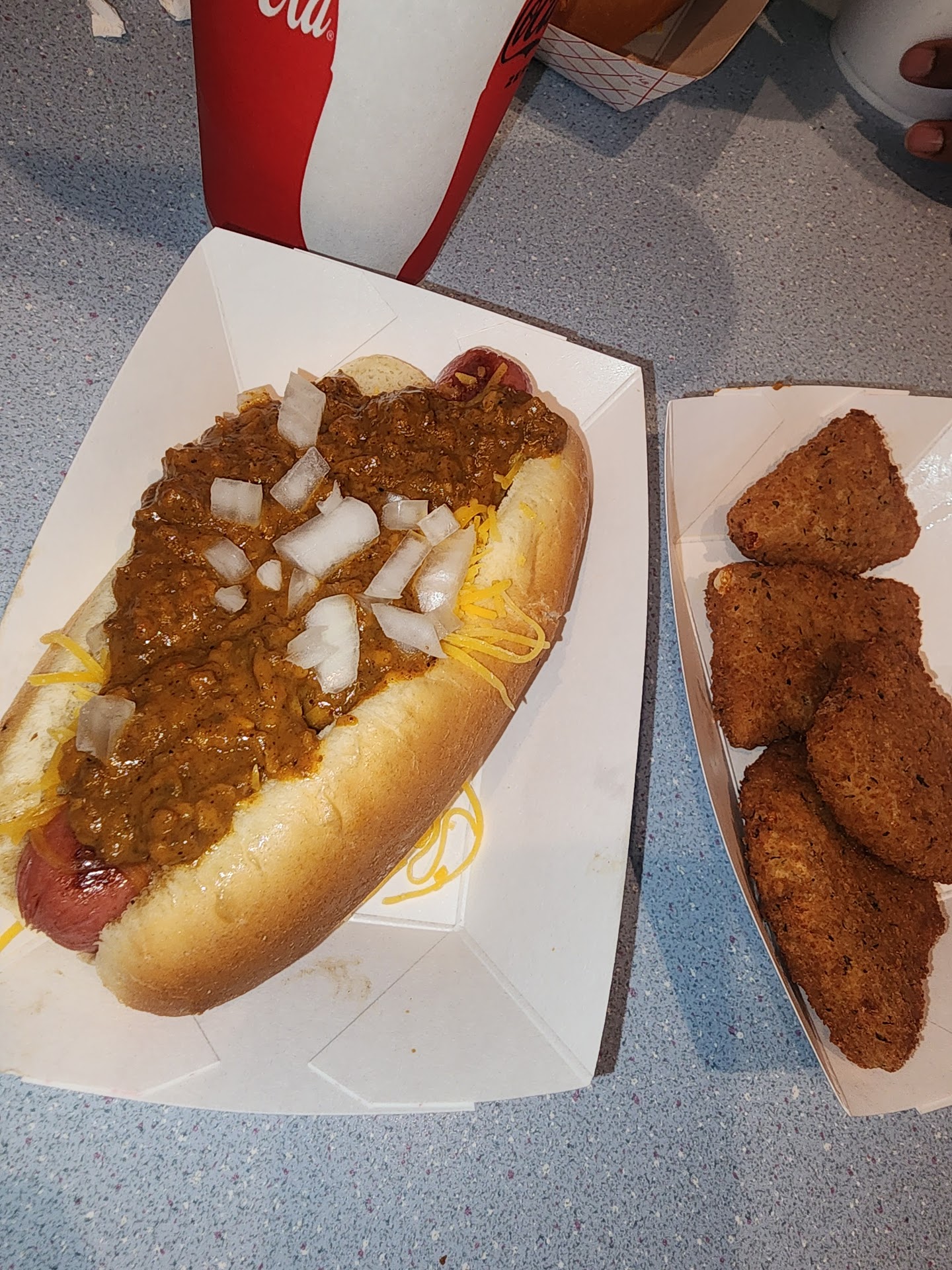 Ā Ā Ā Read moreOrdered 2 footlong chili n cheese hot dogs with 2 orders of onion rings and 2 pops. The hot dogs were Luke warm the chili sauce was too. Plus the chili sauce was so very bland, it tasted like chili powder ,water and hamburger. The shredded cheese they had on them wasn't even melted. The onion rings were over cooked, extra brown and hard. We ate a few bites of our food and threw the rest away. The only thing that was good was the pop. Was looking forward for a long time to try it out and was very disappointed to say the least! The price came to over $30 which is was not worth at all! Will not be back! On to finding a decent chili dog around here! Seems to be a shortage of good chili dogs...