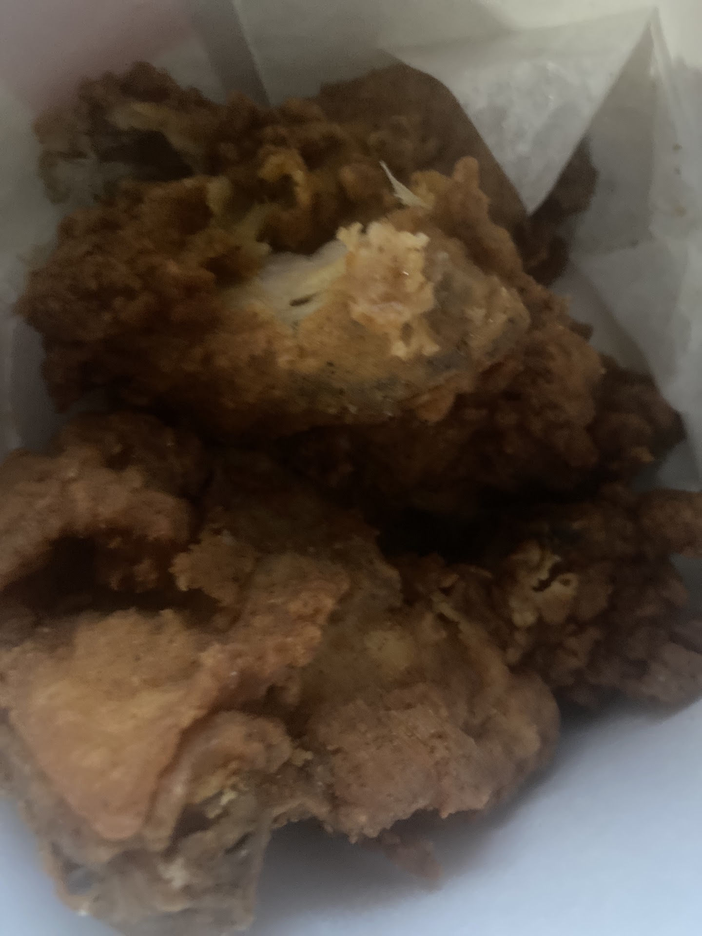 Read moreI ordered this through the app to pick up after work, when I went to the drive thru to pick up my order, the man there wuickly opened the window and practically pushed it at me. I had my phone out towards the window so he could see receipt but he just posed the bag st me a said “ here you go” like he was riding me away. It wasn’t busy at all. Then when I got home to open the food it was room temperature, the chicken looked as is it had sat in grease all day, it did not taste like the Kentucky Fried Chicken I’m use to with the good flavor that is distinct to KFC. This is the only KFC left around the area, the others were shut down, now I know why. If this is how the quality has went down. I am highly disappointed and don’t know if I will ever go back , I don’t know, maybe it was bad management or employees had bad day. But whatever it was they really need to work on improving their crews...