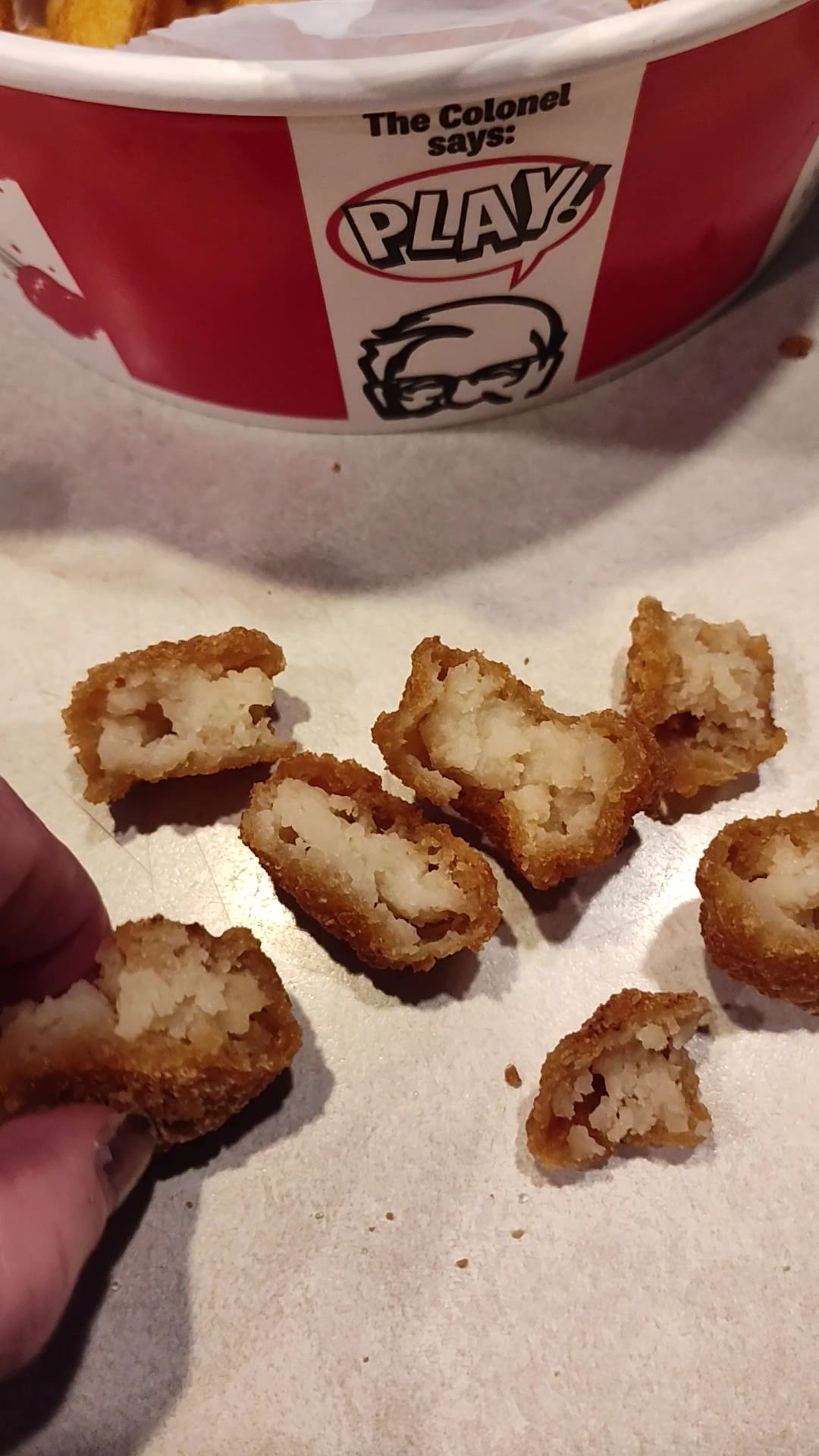 Ever since I saw the commercial for the mashed potato poppers, I had to get me some KFC. And as an added bonus I get extra points on my fetch app for going to KFC. Win win. So I went in the restaurant this evening to order one of those double dunk buckets and ask if we could substitute the french fries for some coleslaw instead. The manager told me no, and that was fine I went ahead and ordered a small coleslaw for my husband because he does not like french fries. This was a to go order and the manager told me it would be a couple minutes because they were making fresh tenders and I said thank you very much sounds good to me. A few minutes goes by and my order was finally finished as I went to grab the bags I noticed some dipping sauces that I don't even like so I asked could I get ranch instead and the manager said well this is how the box comes with all these different ones but I guess I can swap them out for ranch. I said thank you very much because I don't even like those other kinds and I told him I was going to order this online and have it delivered and online they let you choose your dipping sauces. But I decided to not order online because I wanted to find out if we could replace the fries with coleslaw. Anyway, I got home, gave the husband his I got mine and the mashed potato poppers were way overcooked and old which made me sad because that's the whole reason I wanted to go to KFC in the first place. And I can't understand if they were making me fresh tenders then why couldn't they have made me fresh mashed potato poppers? So then I think, they were probably out of tenders and they had to make more. They weren't out of poppers and chose to give them to me old and overcooked. But to top it all off, we noticed that we didn't get any biscuits and it's supposed to come with four biscuits! What a terrible experience.