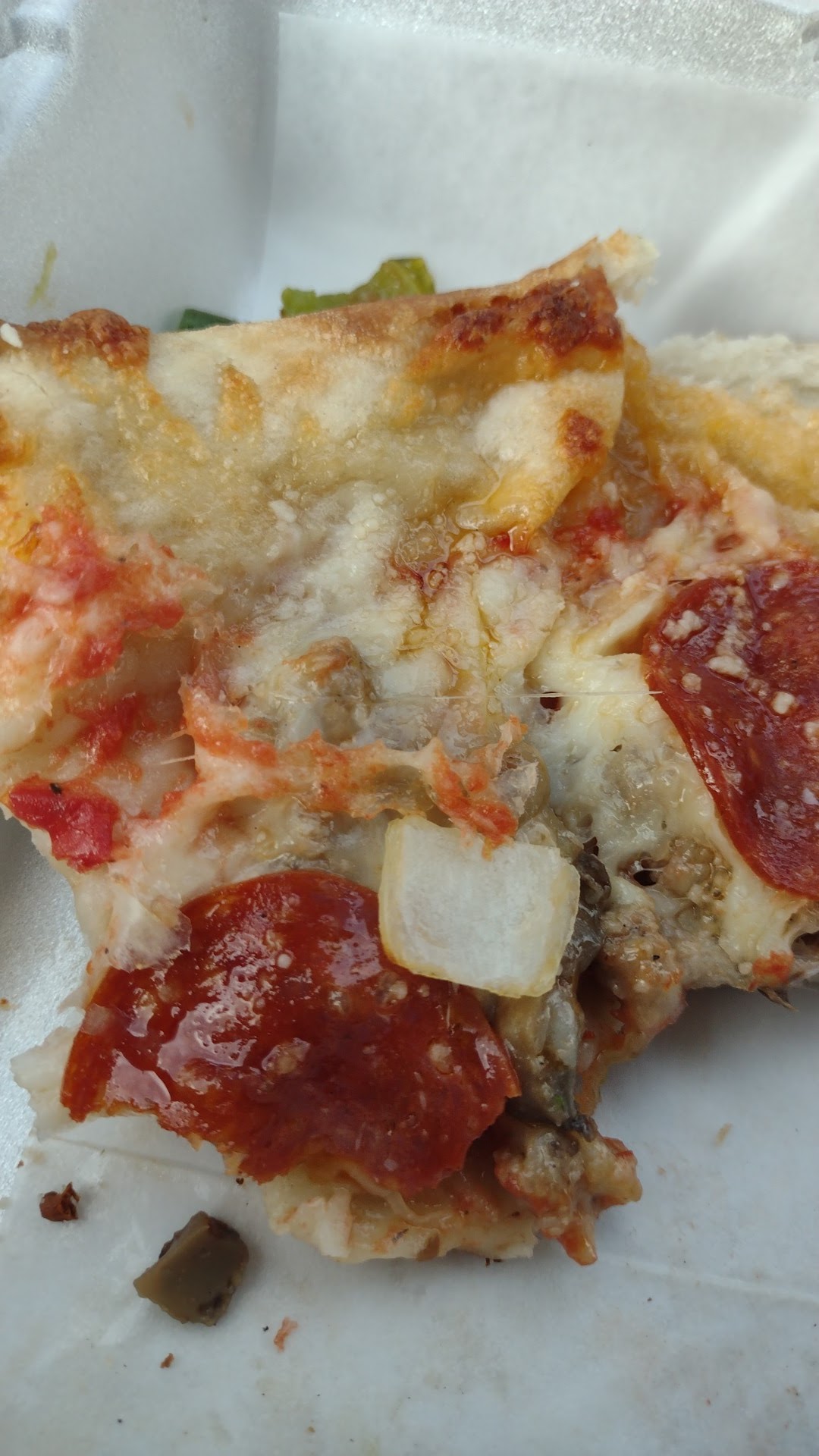 Ā Ā Ā Read moreHad the stuffed meat lovers slice with pepperoni bread sticks yesterday the pizza lacked flavor lacked sauce the cheese sauce I got with the bread sticks had a piece of paper in the middle of the cup with writing on it when I took it up to show the young lady she tells me it was a piece of paper to show the health inspector when it was made and it probably fell in the cheese 𤮠I had eaten out the cheese cup Iām highly disgusted and dissatisfied felt sick when I got home will never be back this place use to have good food just doesnāt...