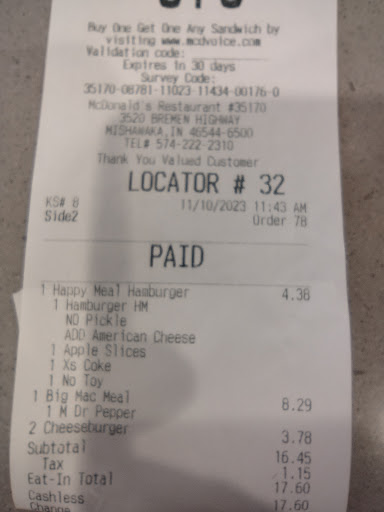 The other time I went to this location, a couple weeks before in the evening. they had to make and remake by double cheeseburger three times before they could get the options of no mustard and extra onions correct, while also giving me a burger that was very cold.