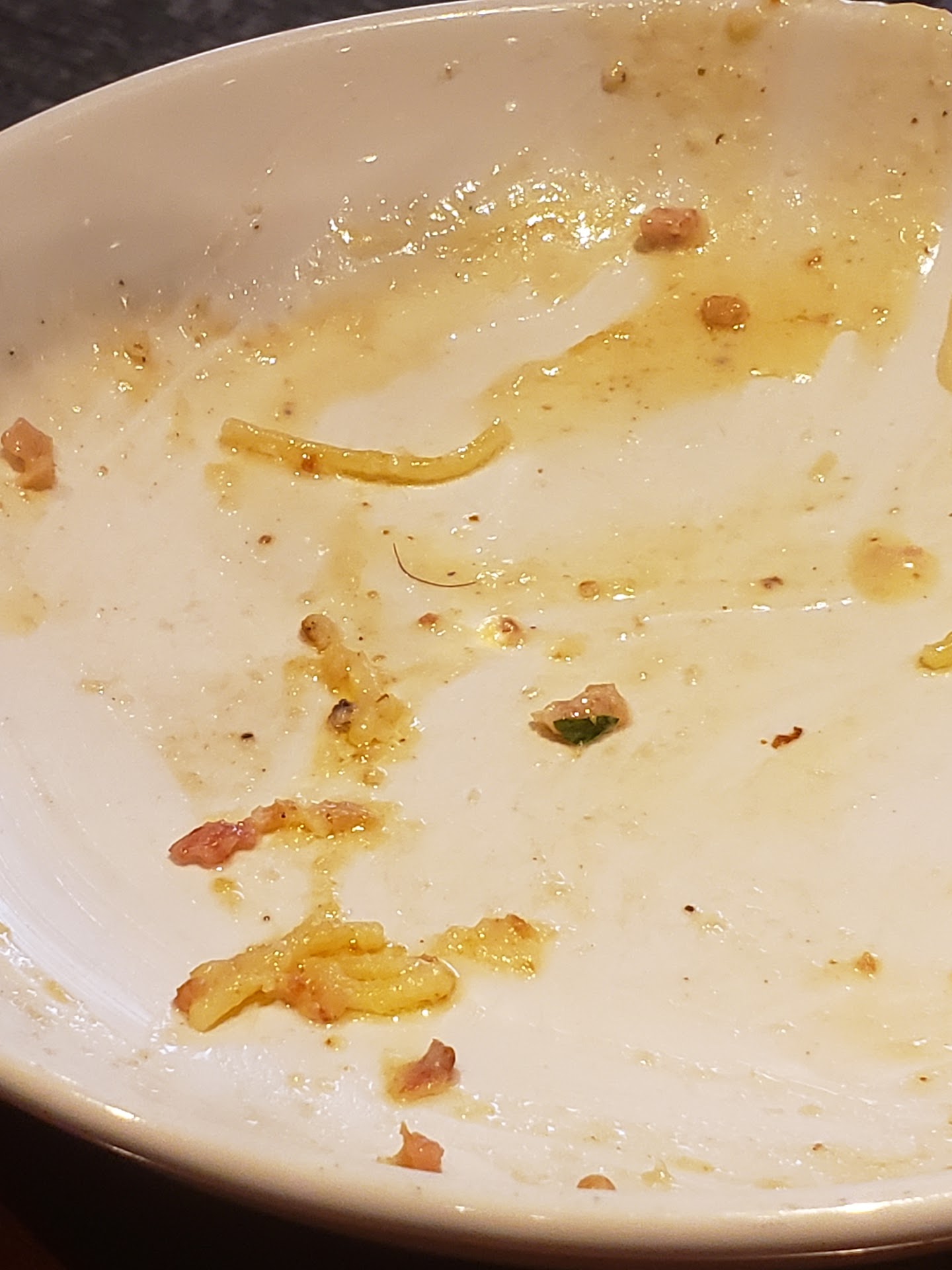 When we were seated, which was a nominal wait due to time and being the Christmas season, we were cared for by a young lady who was probably one of the most polite and attentive people I have encountered at a restaurant. After ordering, she brought out bread sticks and salad. Being Italian and also wanting to show off a little, I thanked her by saying "gratzi". She immediately responded by saying "wow, impressive! Is that French"? I replied; "No", she then asked; "Spanish"? I replied; "No, it's Italian". However, I think I embarrassed her slightly by not recognizing the Italian "thank you". The service she exhibited pretty much made us feel like we were the only patrons in the entire restaurant. Every few minutes she came over to see how we were doing and if we needed anything. She even took extra time to talk with my 6yo son who shared his day with her. She even apologized for not being more attentive due to picking up more tables in another zone.